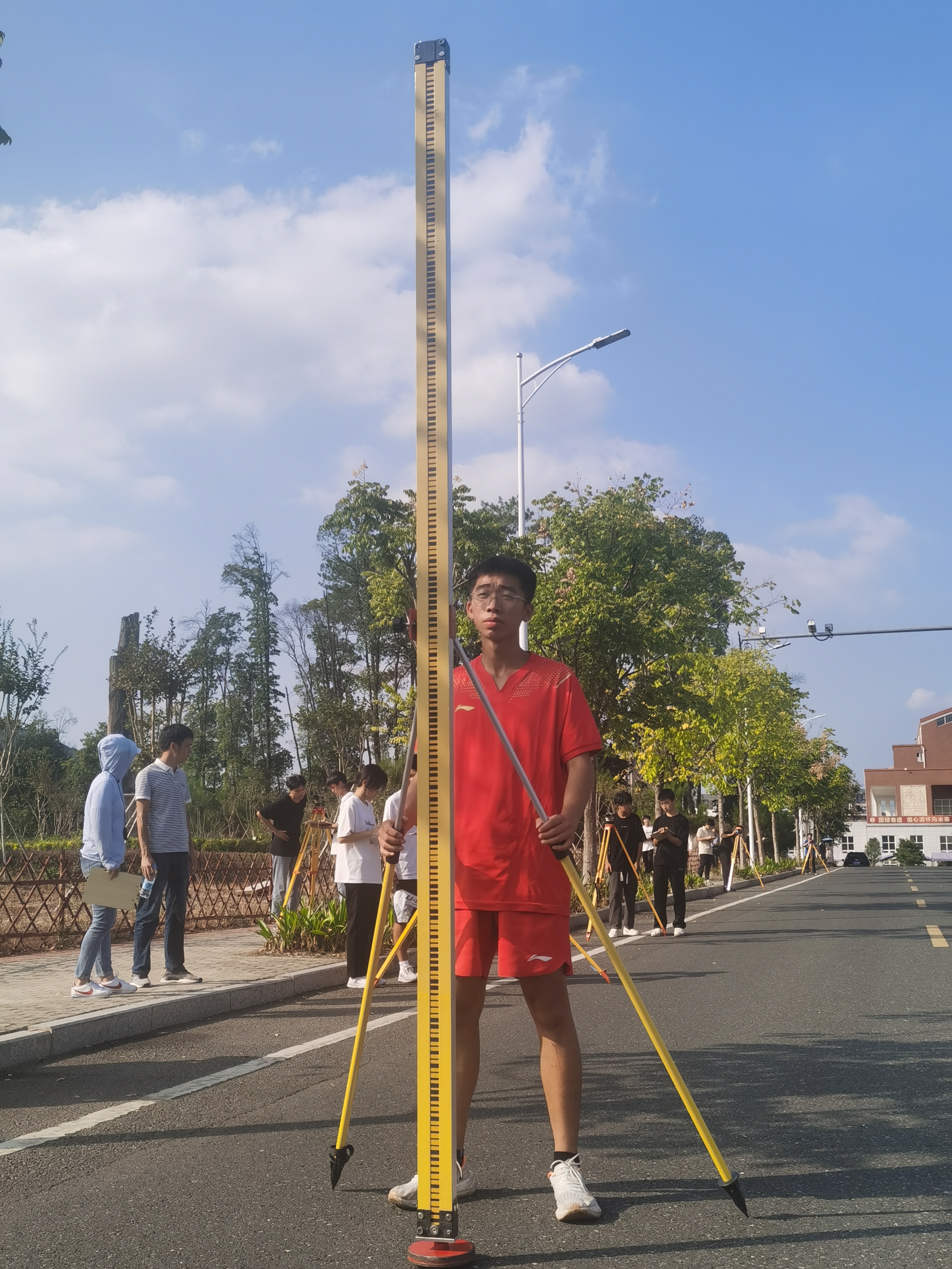 交流会最后议程,各院校在竞赛场地上进行拉练竞赛,包括一级导线测量、水准测量和1:500测图项目。