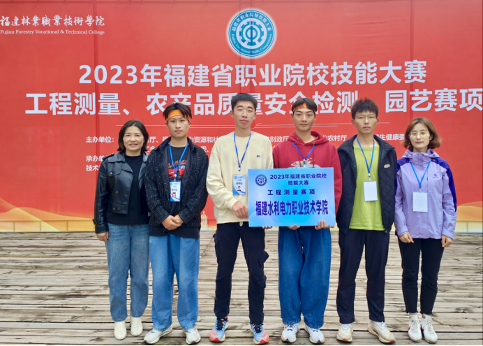目前,由福建省教育厅主办的2023年福建省职业院校技能大赛(高职组)“工程测量”赛项在福建林业职业技术学院落下帷幕,来自全省共23支队伍经过三天的角逐,我校水利工程学院林波、叶红老师精心指导的康志杰、刘伟林、沈智鹏和甘圳洋团队喜获团体一等奖。