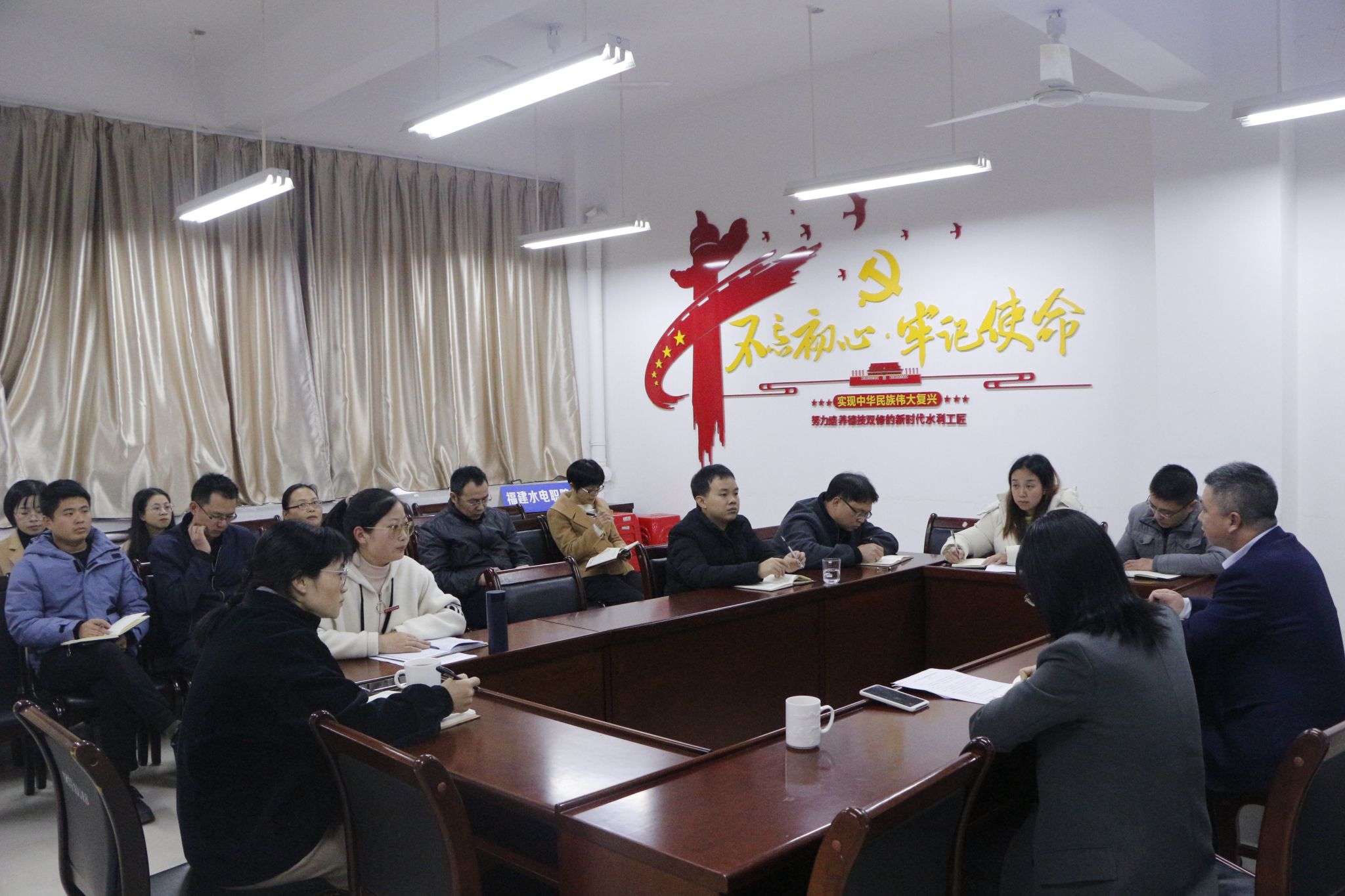 系主任张美新强调要坚守教育教学主阵地,把意识形态责任制贯穿教育教学全过程。要深刻认识新时代背景下意识形态工作特征,精准排查、及时化解教育教学各领域意识形态风险隐患。要深入践行社会主义核心价值观,通过课程思政等载体弘扬新时代水利精神,努力为水利现代化事业培养更多更好的高素质技术技能人才。