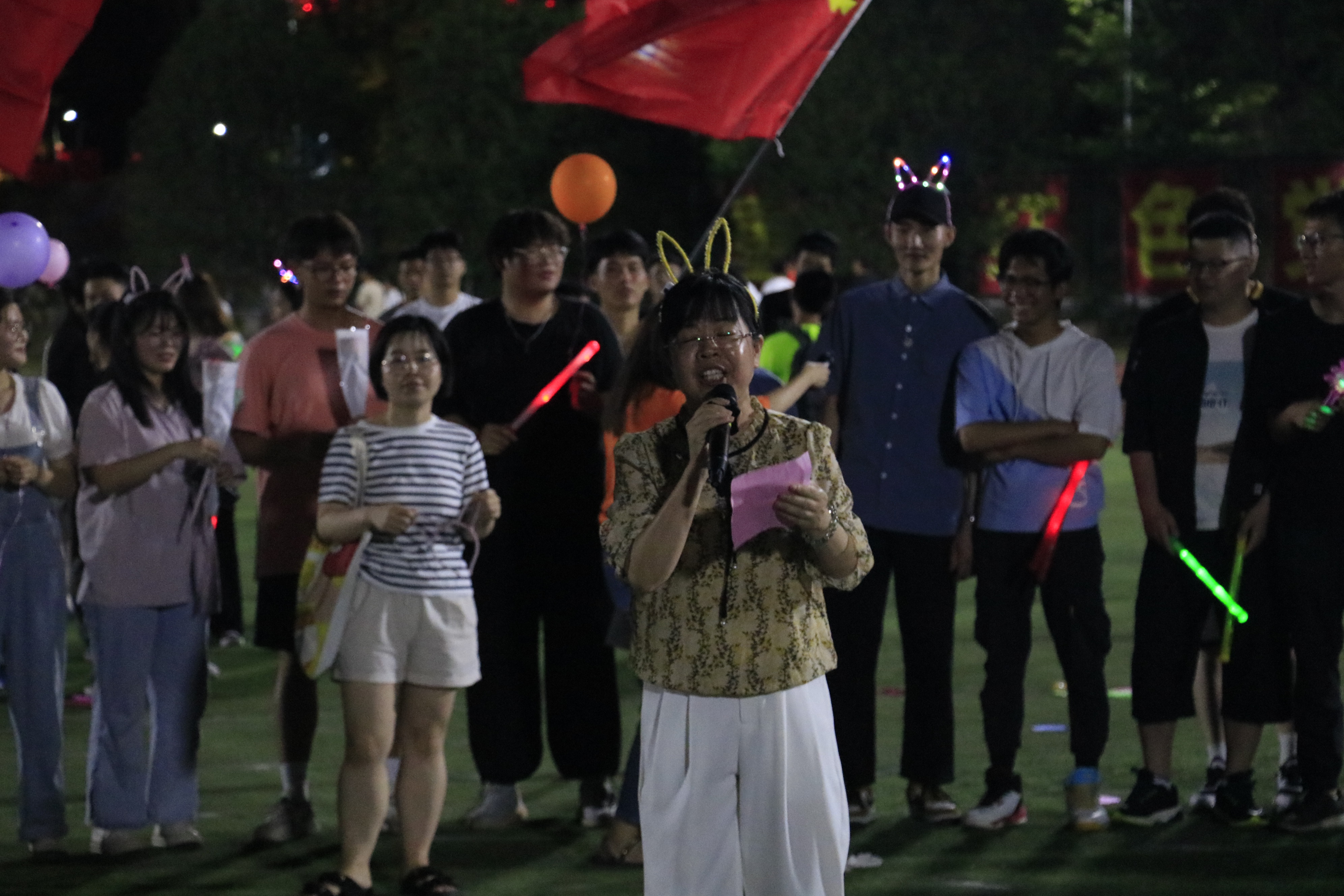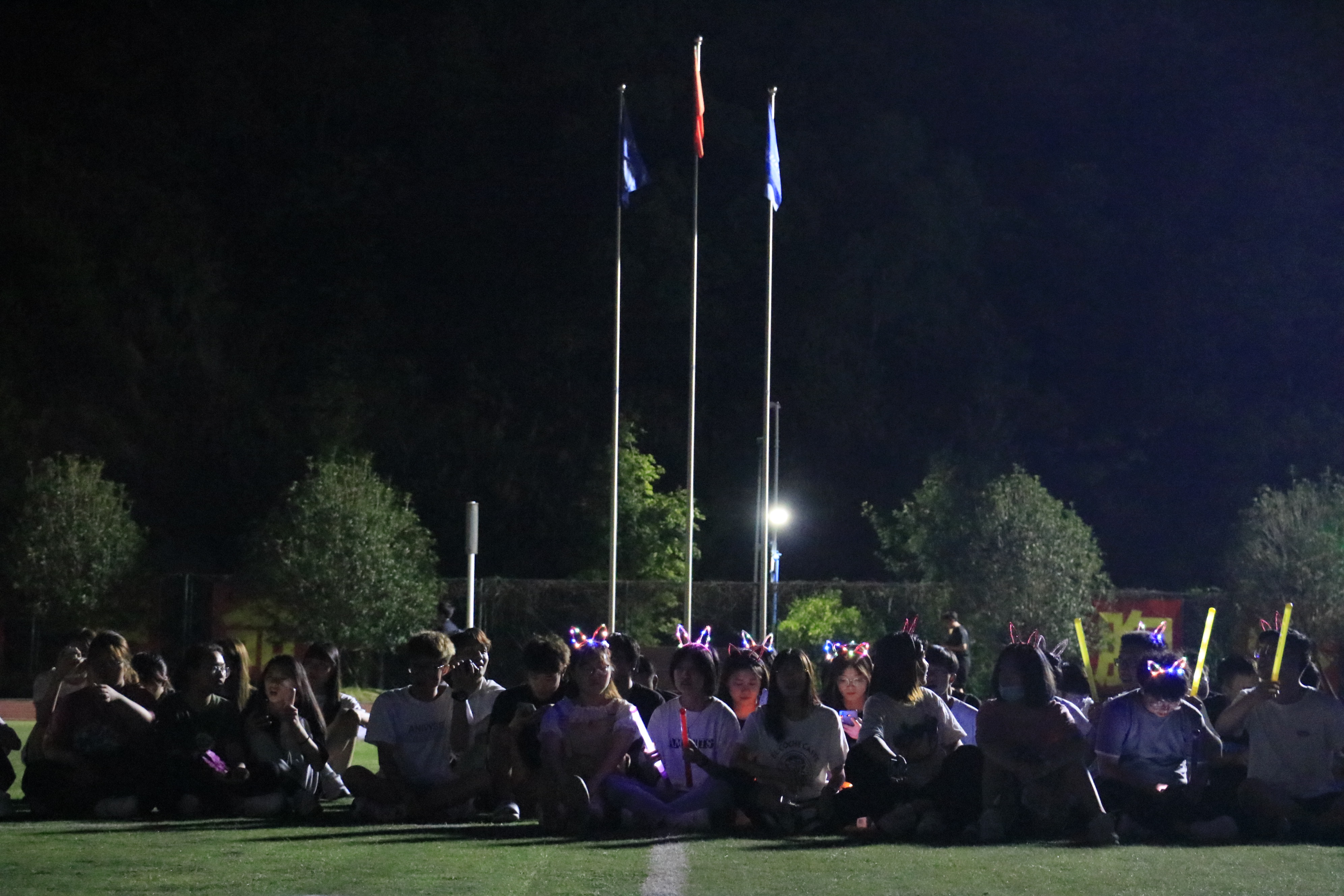 “时光的河入海流......”伴随着早已烂熟于心的旋律,全场师生在齐声高唱《凤凰花开的路口》,大家一起挥舞手中的荧光棒,尽情表达着毕业的激动与不舍。