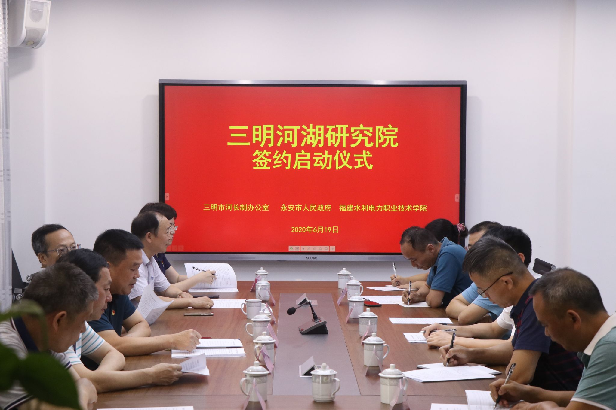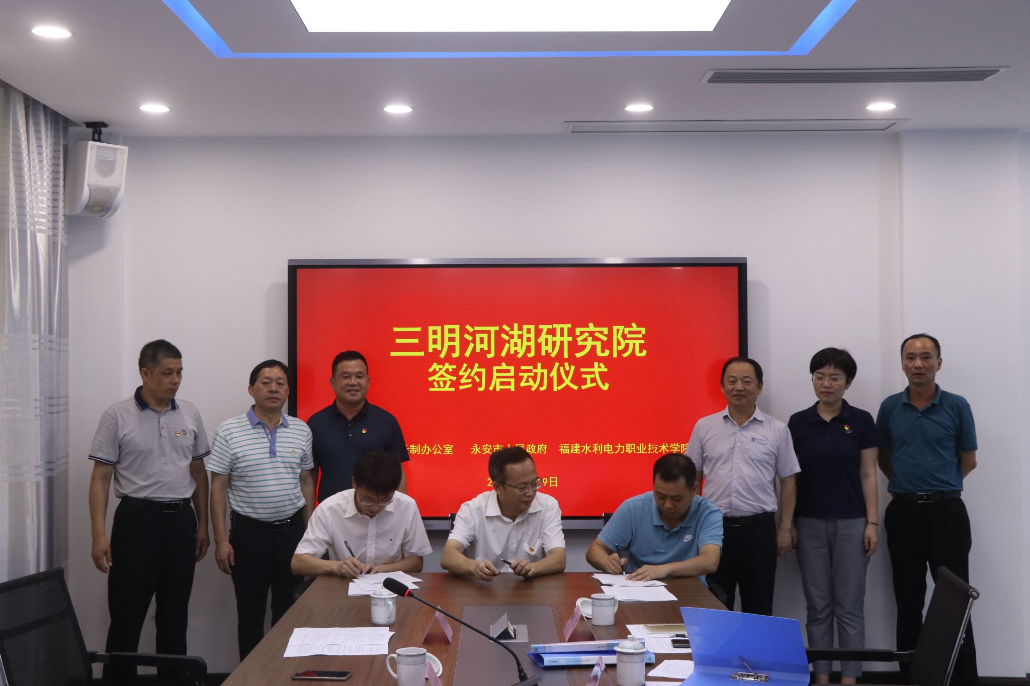 三明河湖研究院是由我院、三明市河长办和永安市政府共同组建,主要围绕党的十九大提出的“坚持人与自然和谐共生,建设美丽中国”基本方略,践行“绿水青山就是金山银山”的重要思想,着力推进生态文明建设,全面推动河湖治理,满足省、市对河湖管理工作的需求、改善河湖长知识结构、打造福建幸福河湖,助推三明、永安乃至我省河湖长制工作更上一层楼。研究院得到省水利厅、省河长办、三明市河长办的高度重视和大力支持,办公室将设在我院,充分发挥我院独特的专业教学资源和人才优势,积极探索河湖长制教育新途径。将为我院培养适应新时代发展需要的管水治水人才提供一个良好平台,在构建政产校协同育人机制,服务社会和行业,参与生态文明建设等领域发挥积极作用。