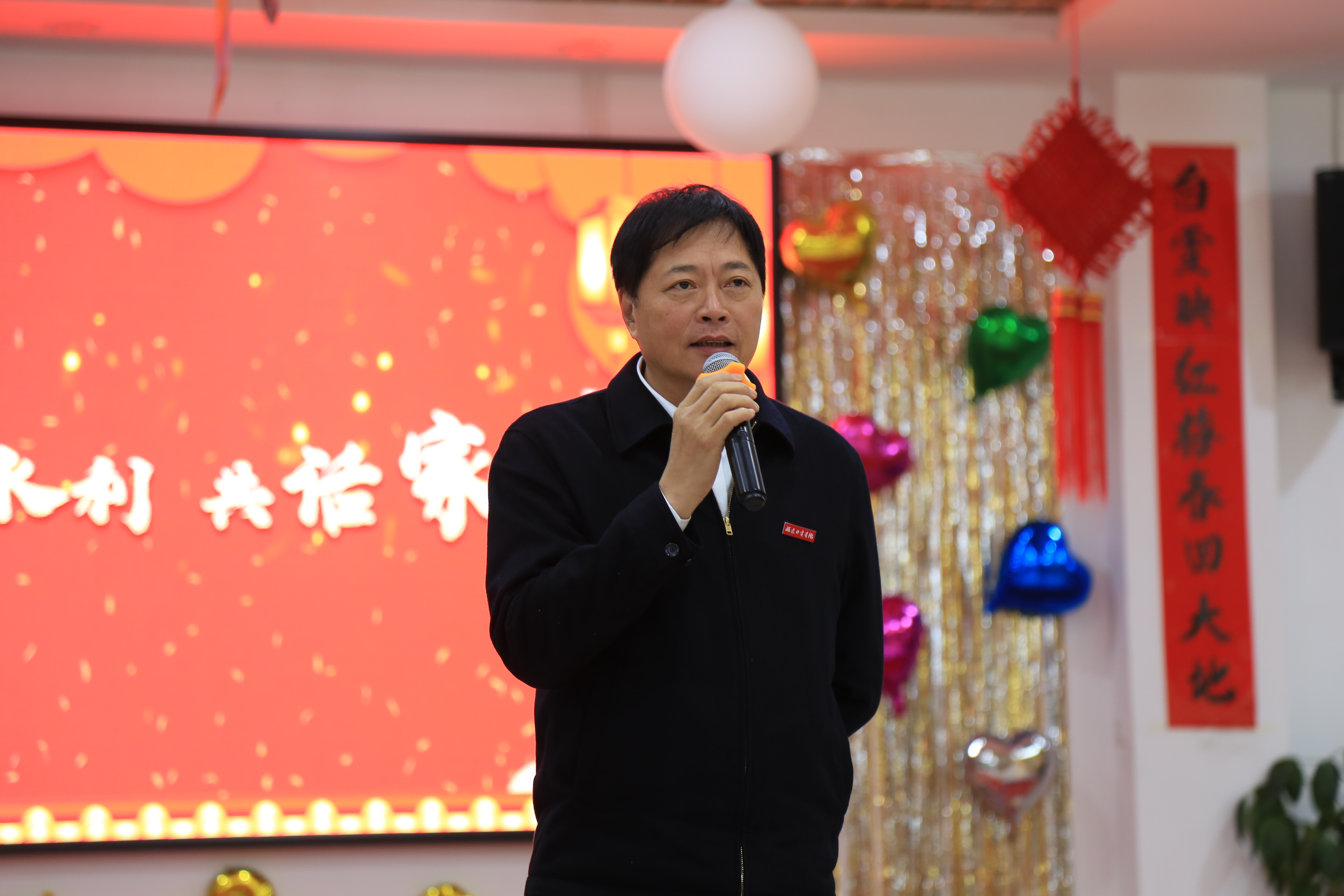 庄伟廉首先向大家致以新年的祝福,他对全体教职工在过去一年为学院和系部发展做出的贡献表示感谢,并由衷感谢家属们的理解与支持。同时,也希望水利工程系全体教职工只争朝夕、不负韶华,继续扬帆远航,不忘初心、逐梦前行,传承“忠诚、干净、担当、科学、求实、创新”的新时代水利精神,力争在新年里取得更大的发展和突破。