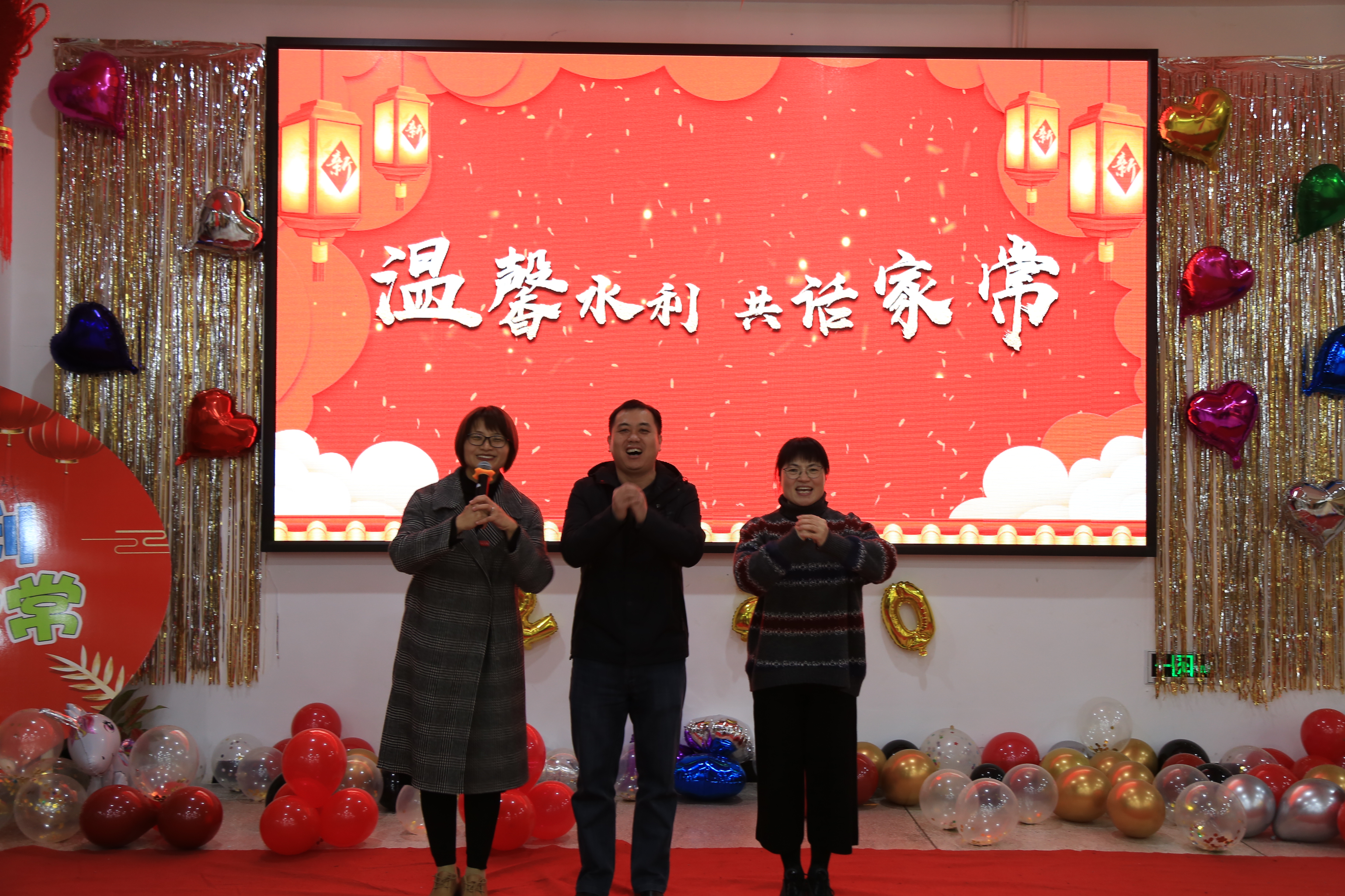 喜辞旧岁,笑迎新春。1月12日,学院教职工餐厅内流光溢彩、灯火辉煌,水利工程系以“温馨水利,共话家常”为主题的2020年迎新春趣味联欢会在此上演。学院党委书记庄伟廉、学院副院长杨武盖与全系教职工及教职工家属共60余人欢聚一堂,喜迎新春。