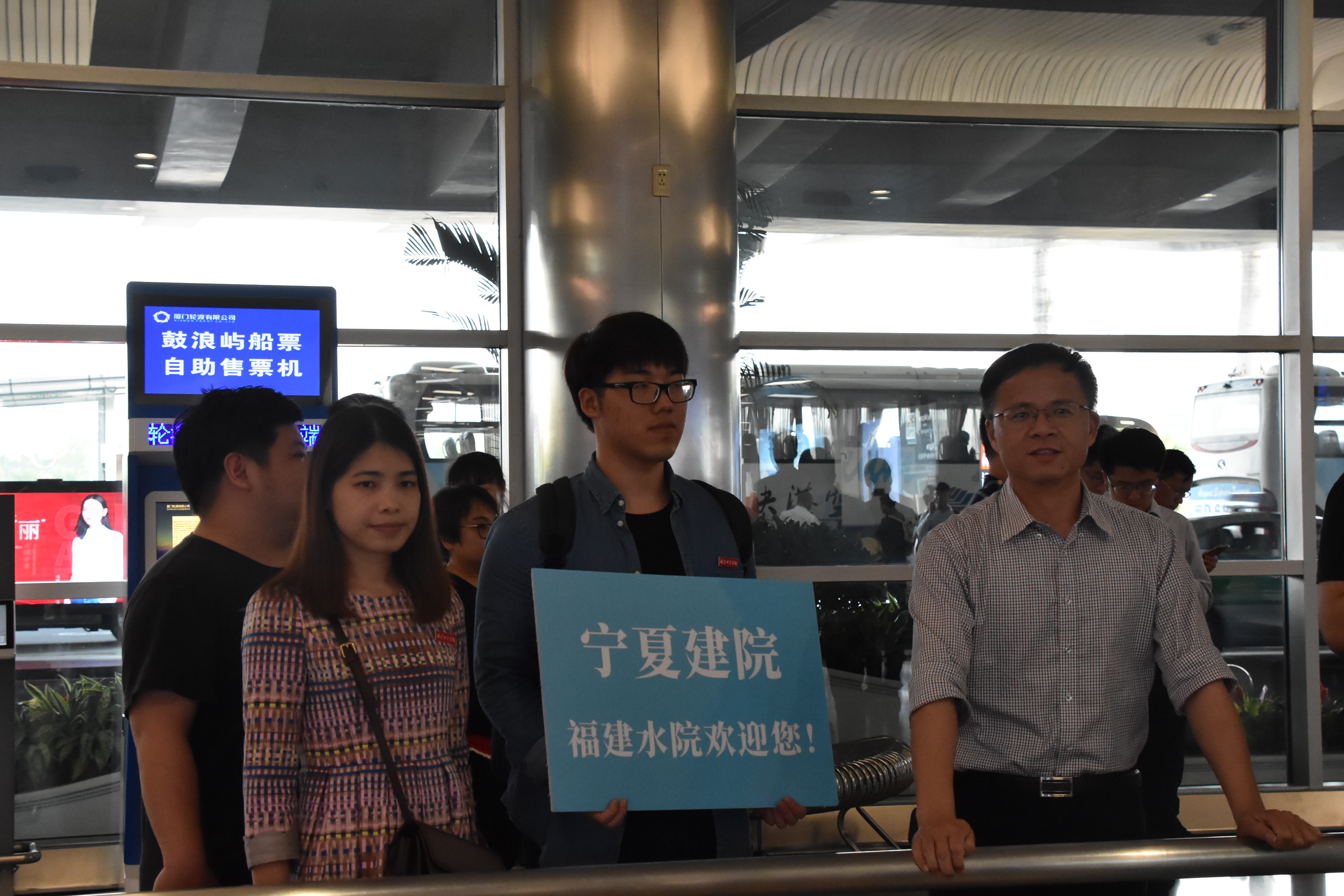 我系老师及学生代表,早早地在厦门高崎国际机场做好准备,举着标识牌,等候迎接客人们的到来。