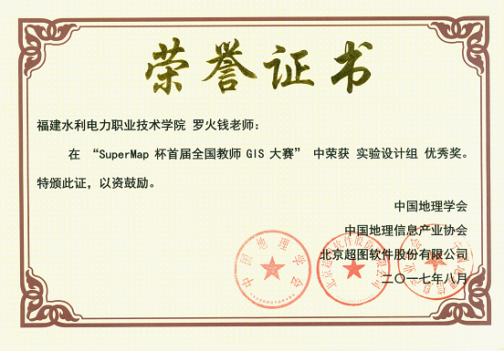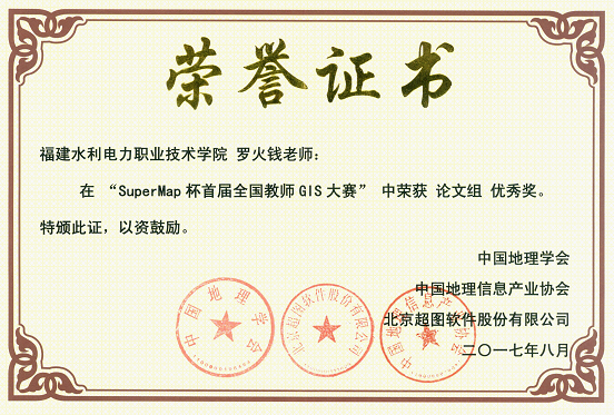 我系测绘教研室罗火钱教师参加了本次比赛的3个组别,在与全国本科院校GIS教师同台竞技中,荣获“授课组”一等奖以及论文组优秀奖、实验设计组优秀奖,展现了我院教师的教学风采和专业素养,对推动我院教育教学改革,不断提高教育教学质量起到了积极促进作用。