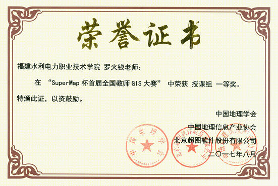 我系教师在“SuperMap杯首届全国教师GIS大赛”中喜获佳绩