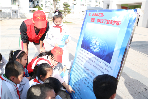 活动现场,系宣传志愿者们通过悬挂横幅、展板,现场发放节水知识宣传手册、水资源保护、防汛抗旱应急知识等宣传材料,积极宣传水资源知识及水生态文明建设和水资源保护等常识。活动当天共发放宣传资料1000余份、主题宣传挂画10幅。通过现场猜谜、生动有趣的水趣味活动,向学生们传播水文化,传递节水、护水理念,营造良好氛围。