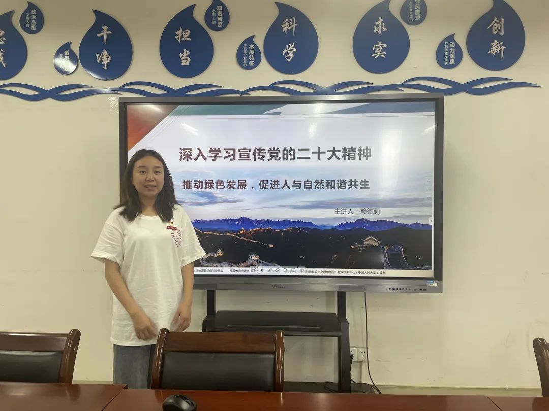 为深入学习宣传党的二十大精神,6月2日,水利工程学院学生第一党支部在禹兴园7-501组织开展”推动绿色发展,促进人与自然和谐共生”主题教育专题党课,支部党员和积极分子参加,支部书记赖德莉主讲。
