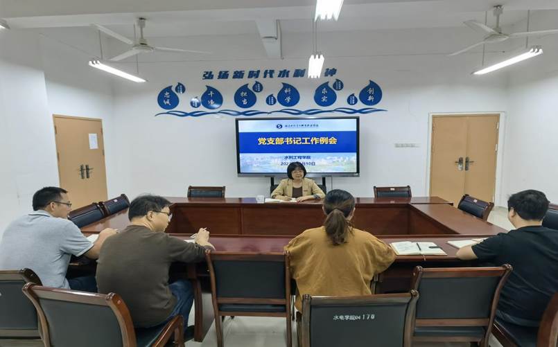 10月10日上午,水利工程学院在禹兴园7-501会议室召开十月份党支部书记工作例会,专题研讨支部党建品牌创建工作。会议由党总支书记刘玉萍主持,专职组织员许丹枫、各教工、学生党支部书记参加了会议。