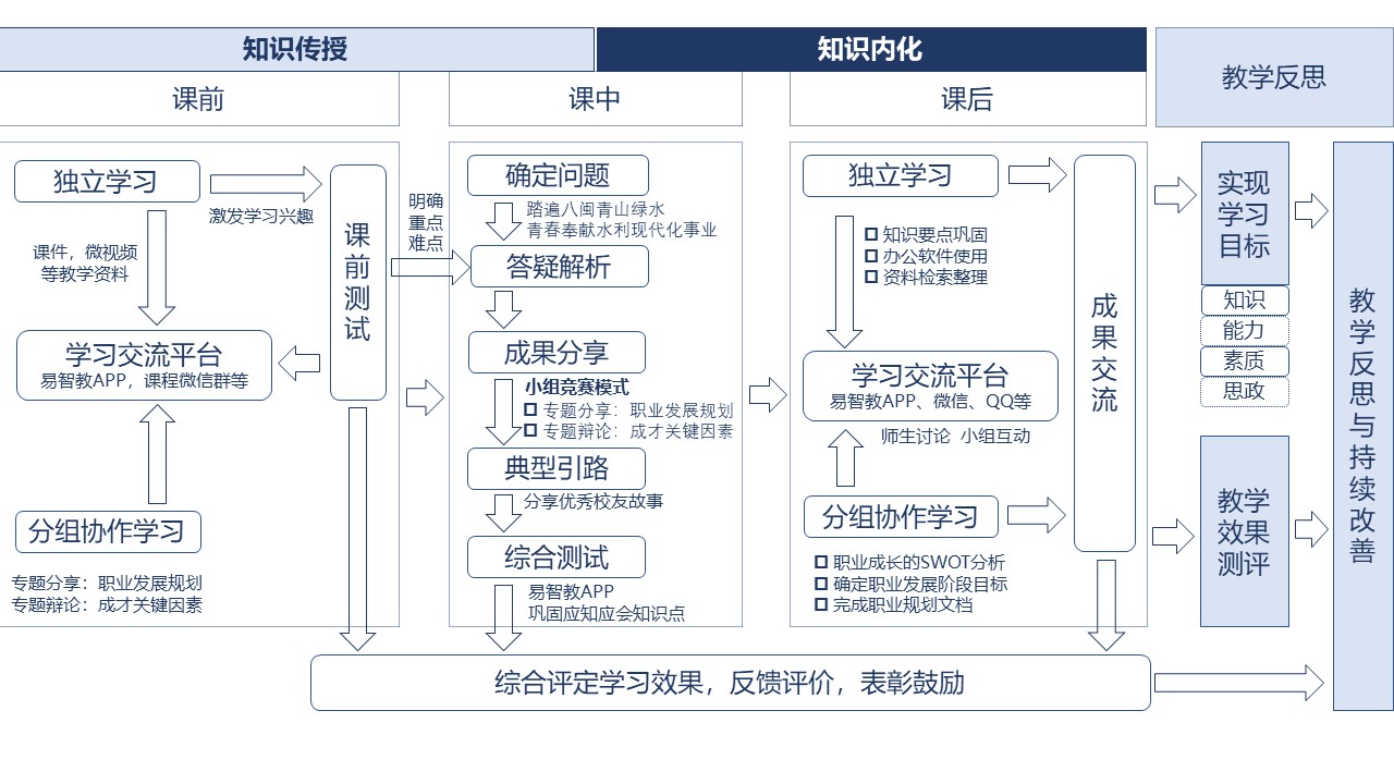 “原来还不觉得国家‘十四五’规划和2035年愿景目标和我们在校生的联系这么紧密。通过课前我们小组成员的学习研讨,以及课上的专题分享,我们一下子有了紧迫感。我们逐渐明白了,我们这一代既是社会主义现代化事业的建设者、亲历者,也是受益者、见证者。我们一定要结合国家和水利行业发展规划,科学合理确定我们的职业目标和行动计划。”在课堂上做了职业规划专题分享的叶修李同学有感而发。