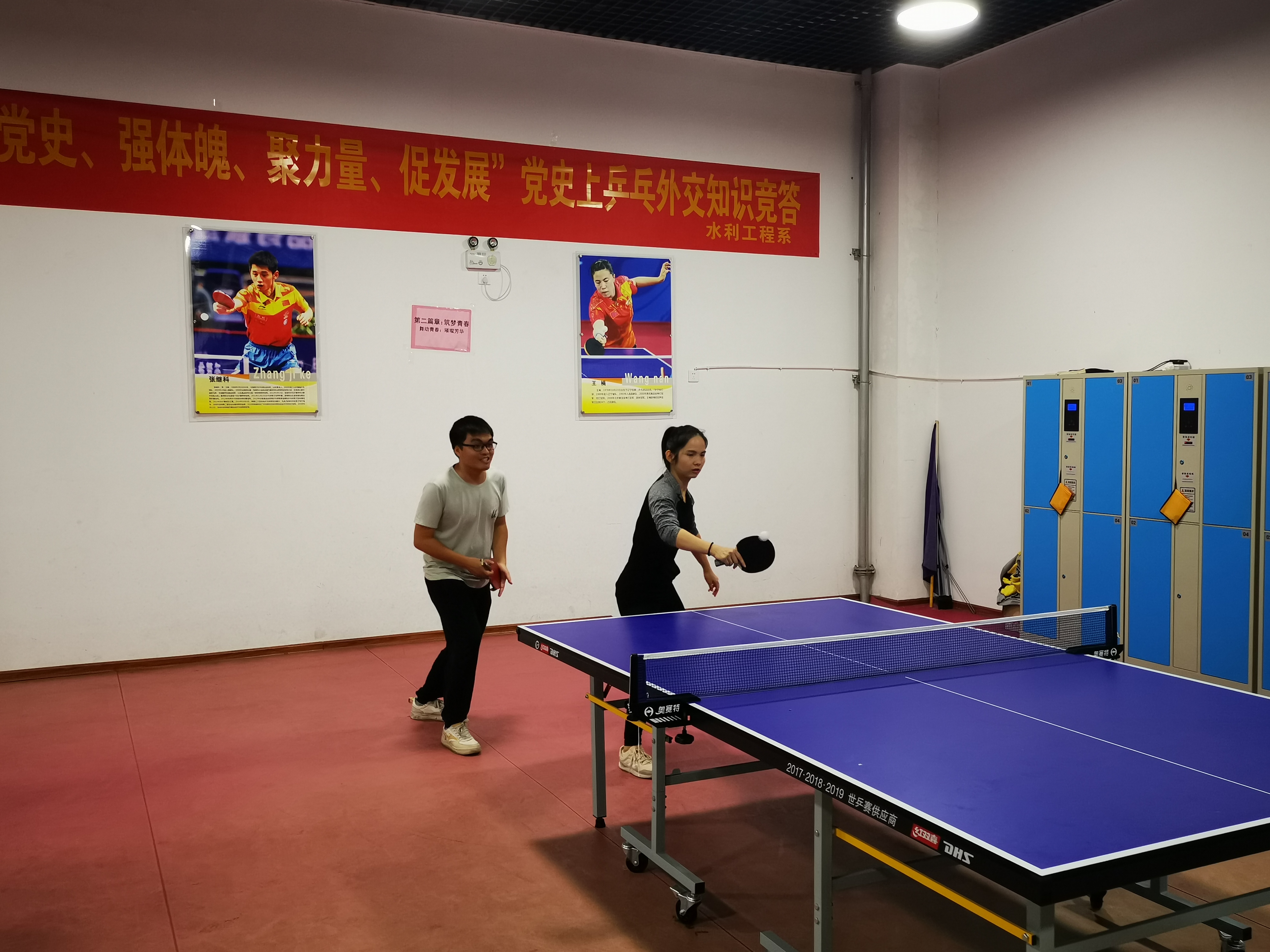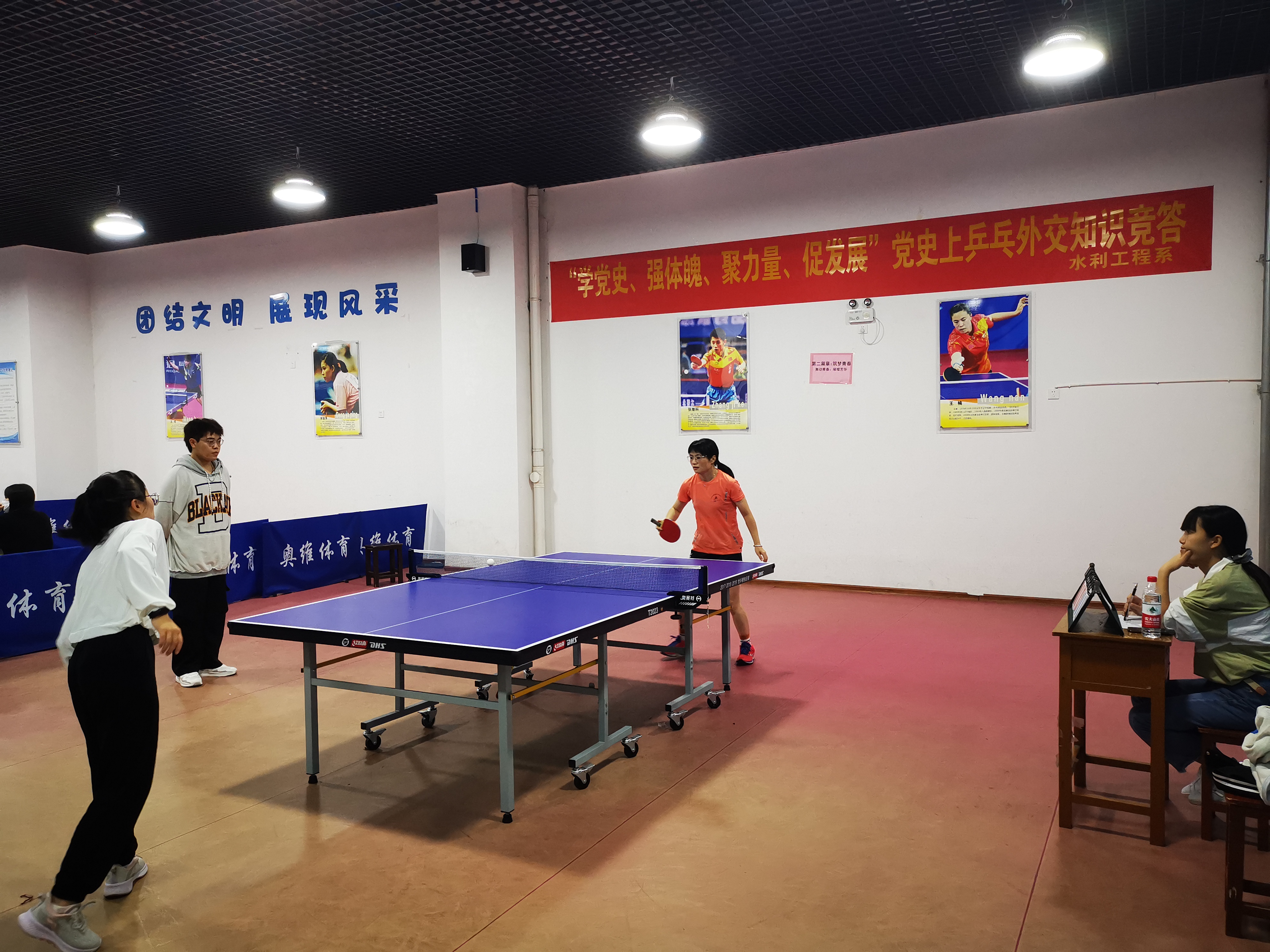 活动在乒乓球馆进行,围绕新中国发展史上发挥重要作用的“乒乓外交”史相关知识开展快问快答活动,穿插于激烈的比赛过程中,把学习和体育比赛相结合,创新了党史学习教育的形式,进一步提高了全系教职工学习的热情,也增强了学习成效。