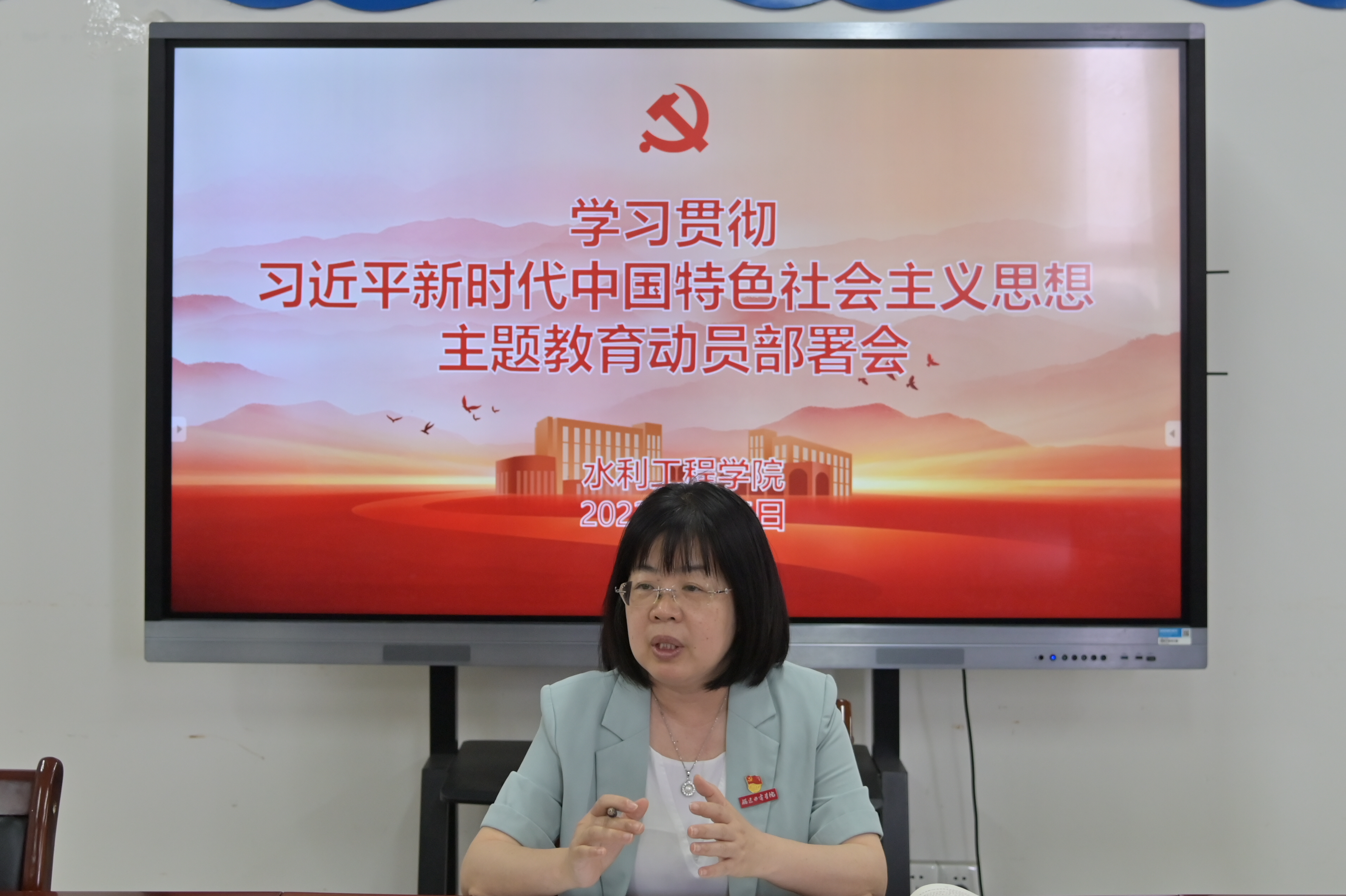 根据学校党委部署安排,5月5日下午,水利工程学院在禹兴园7-501会议室召开学习贯彻习近平新时代中国特色社会主义思想主题教育动员部署会,全体党员参会,学院党总支书记刘玉萍主持会议并作动员讲话。
