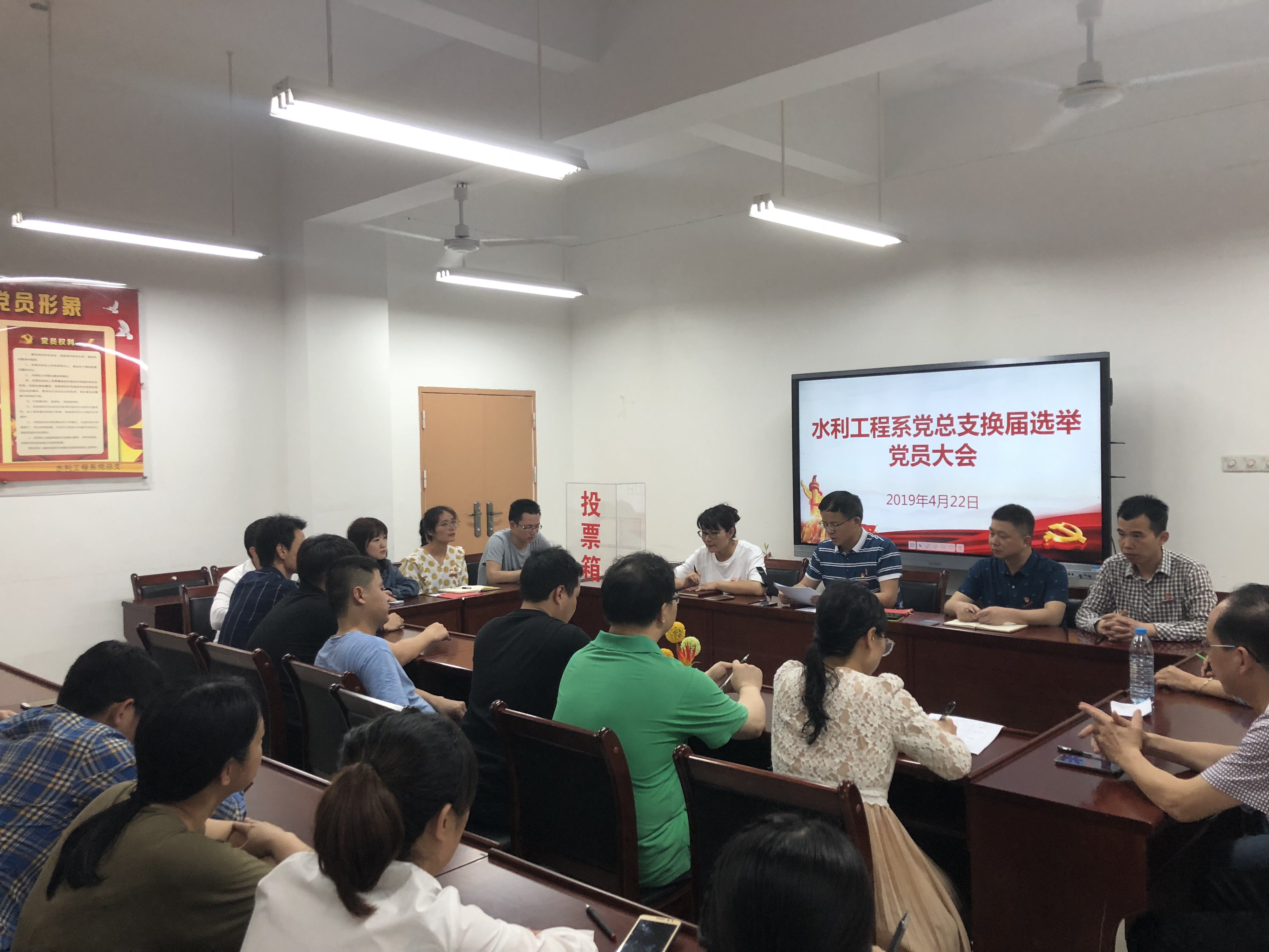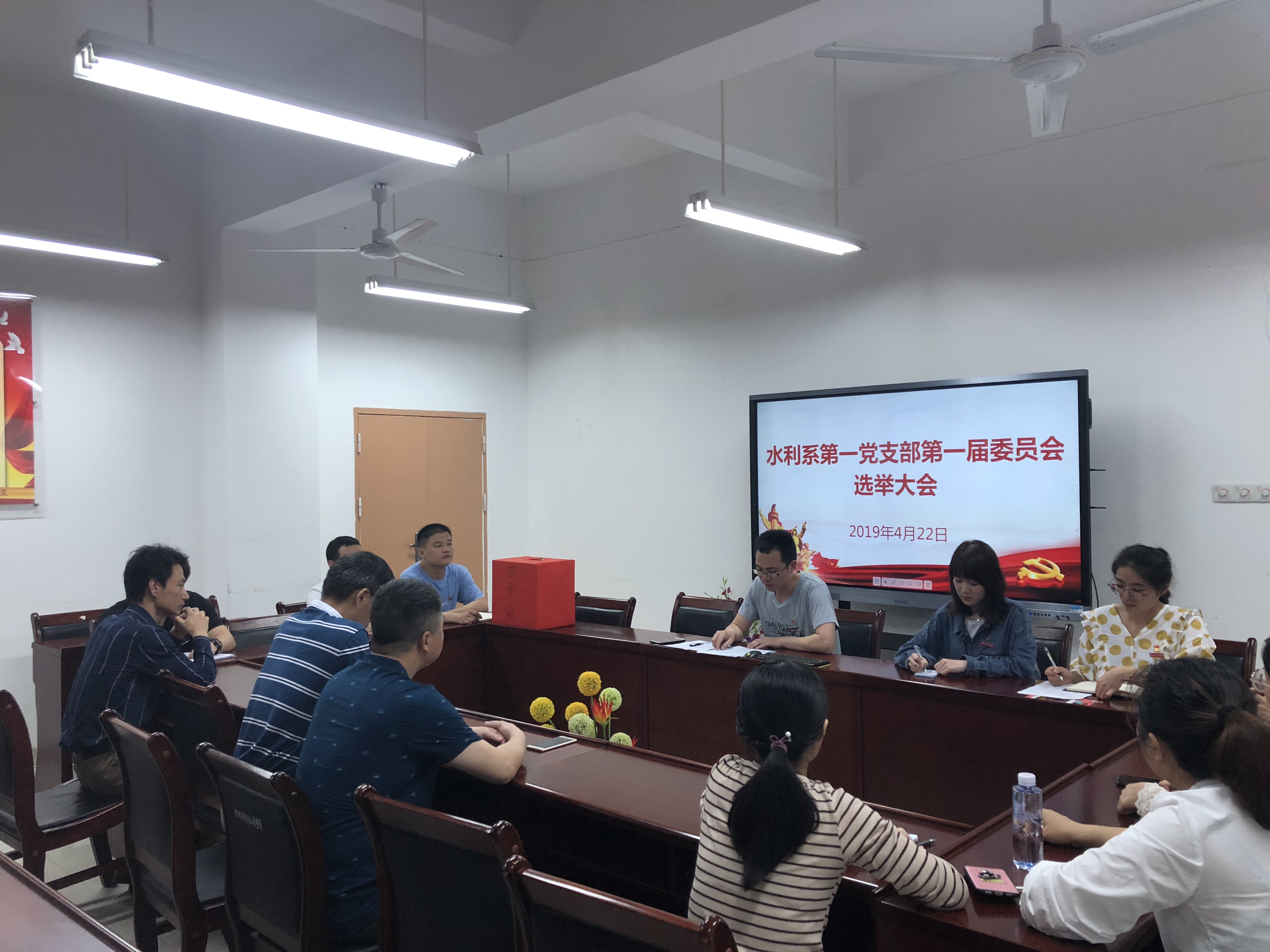 系党总支和各党支部严格按照规定程序,经过精心组织,充分酝酿,在确定候选人之后,召开了党员大会进行选举。大会采取无记名投票的方式选举产生了新一届党总支部委员会和新一届党支部委员会。新一届党总支部委员会和党支部委员会于换届选举之后召开第一次会议,选举党总支书记、党支部书记,同时对各位委员进行了分工。