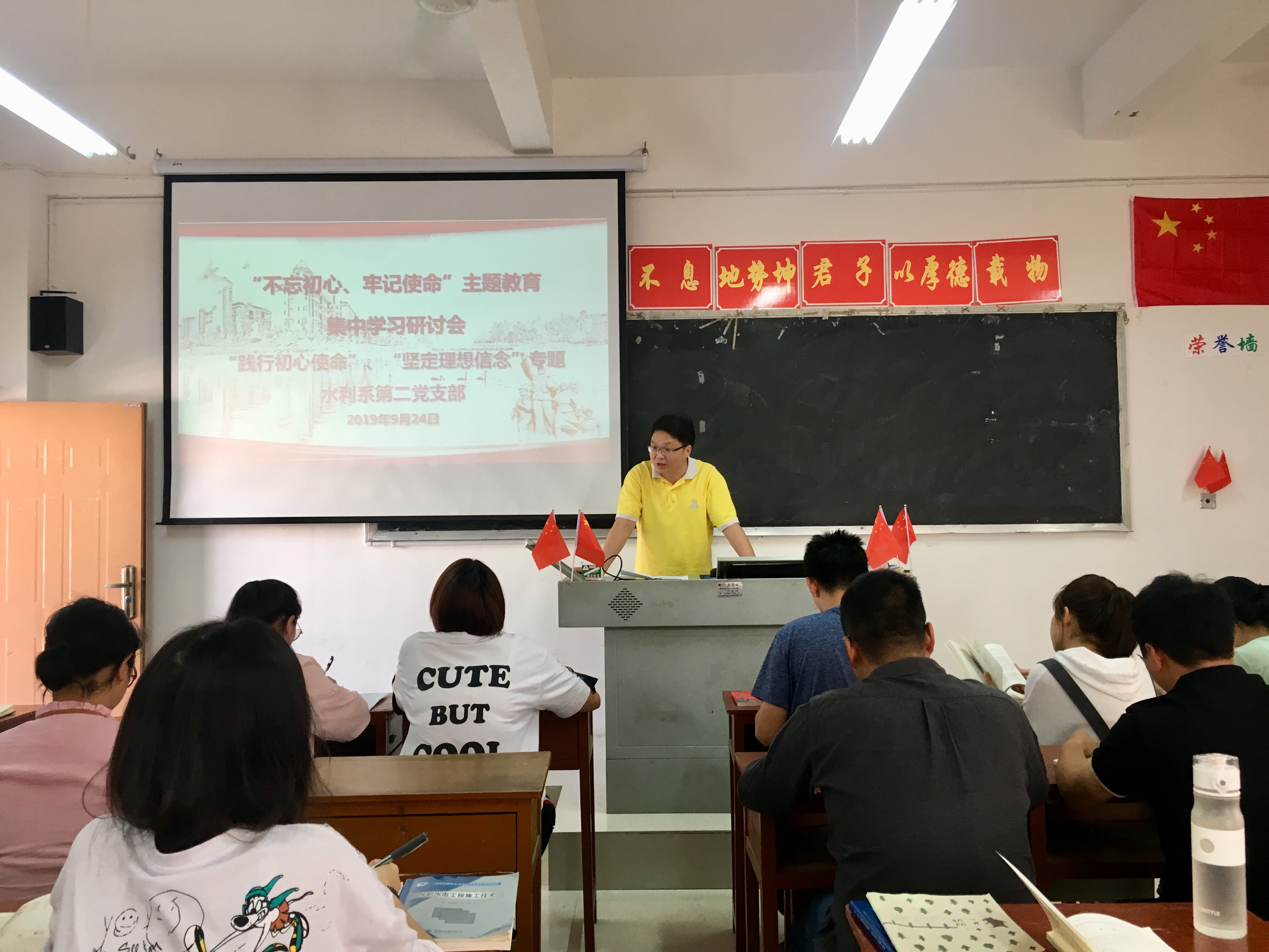9月24日下午,水利系党总支组织两个党支部开展了第一次集中学习研讨会,此次学习研讨会围绕“践行初心使命 坚定理想信念”专题展开。