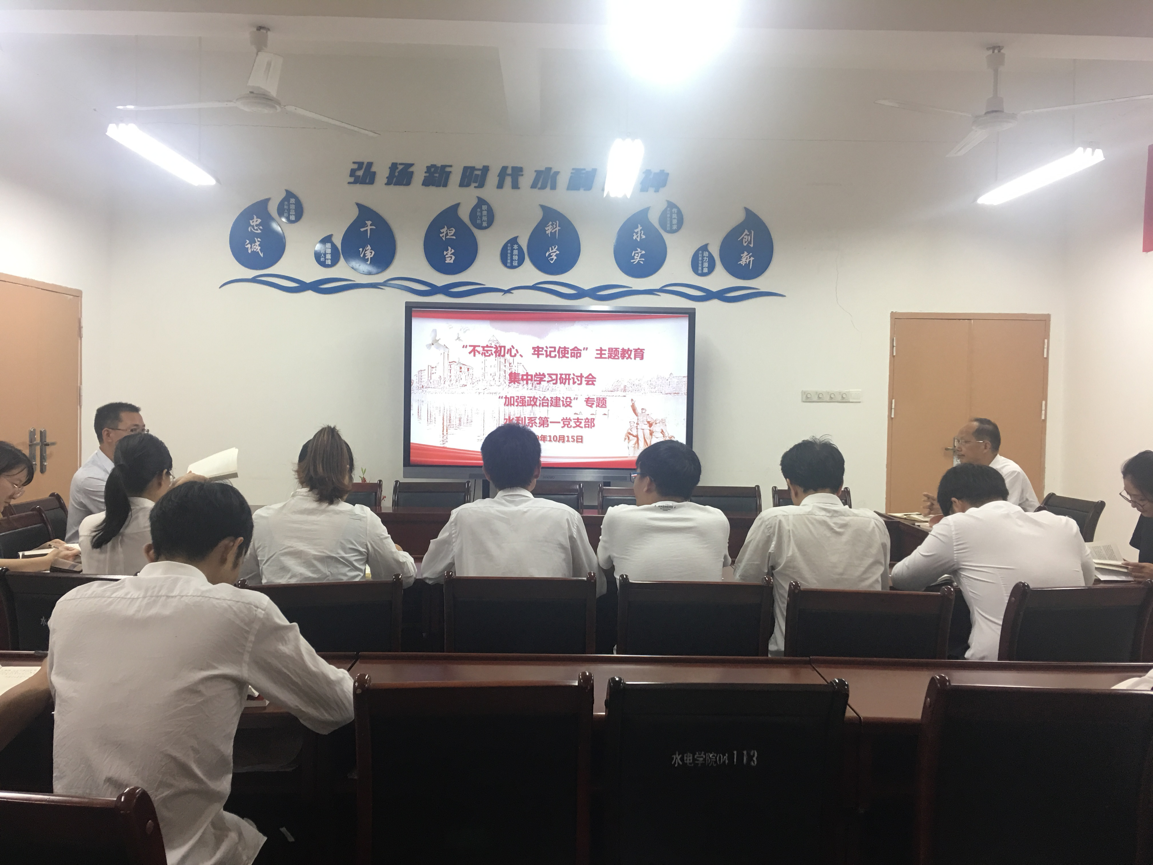 10月15日下午,水利系党总支组织两个党支部开展了第二次集中学习研讨会,此次学习研讨会围绕“加强政治建设”专题展开。