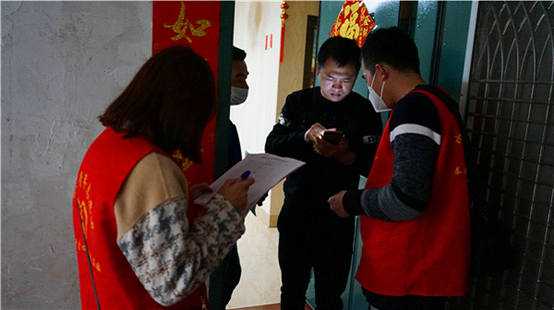随后,13名党员志愿者分成5个小组跟随社区工作人员一起开展疫情摸排和安全防护宣传工作。为将疫情防控工作延伸到“最后一公里”,党员教师们深入小区,挨家挨户上门摸排,指导协助居民们通过扫描二维码登记相关个人信息,摸排家庭人员健康情况,耐心细致的解答居民提出的问题,疏导他们的情绪,构筑起群防群治的严密防线,力求为社区防疫工作提供精准信息。