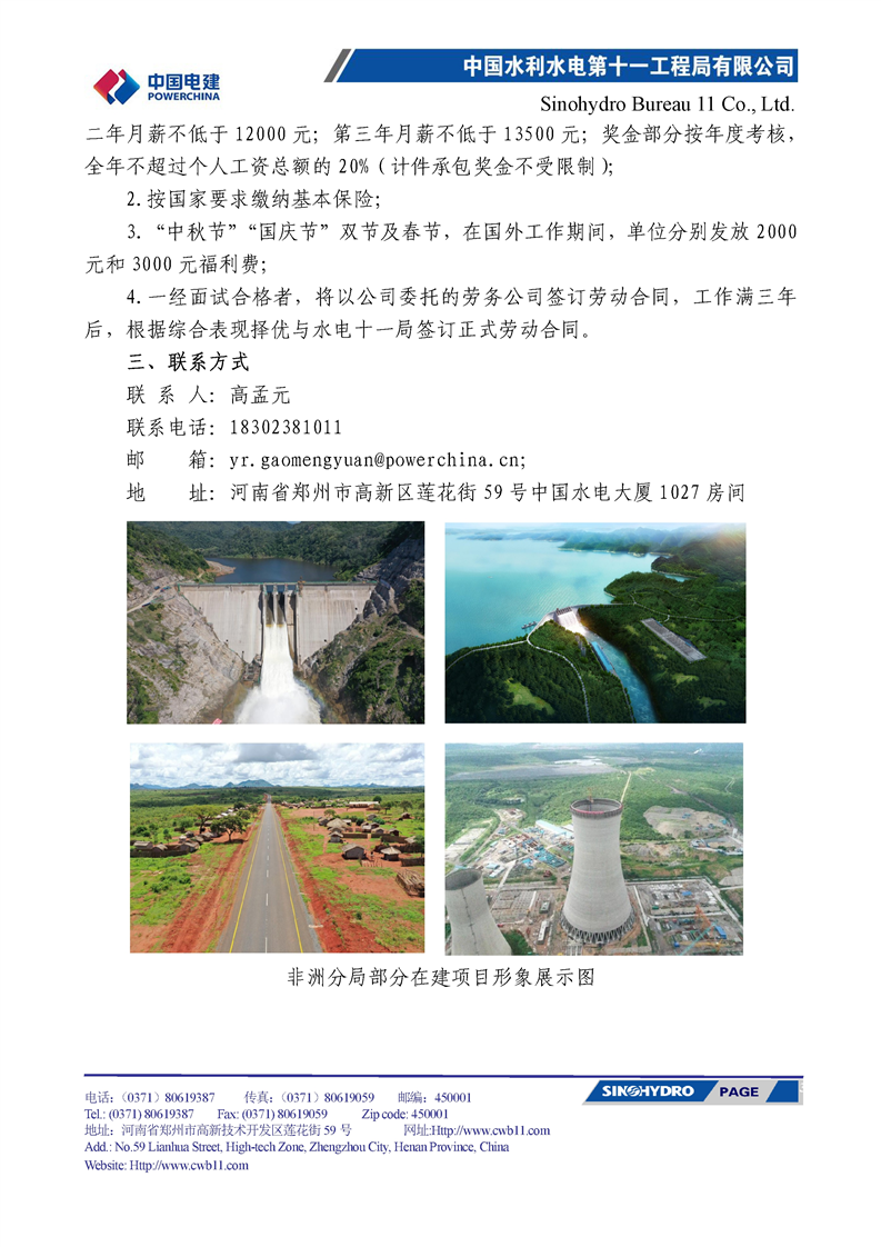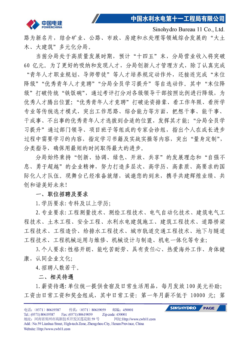 中国水利水电第十一工程局有限公司非洲分局招聘启事