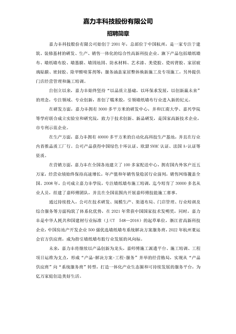 嘉力丰科技有限股份有限公司2022年校招招聘简章