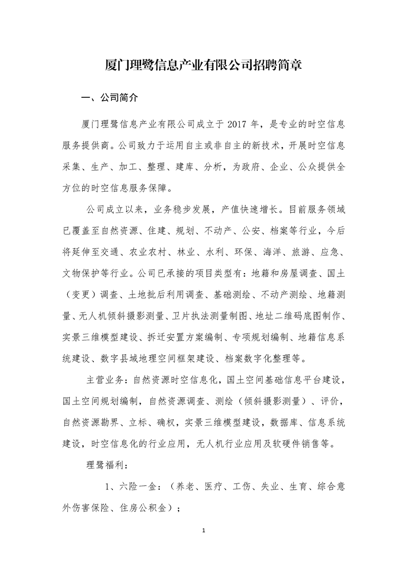 厦门理鹭信息产业有限公司招聘简章