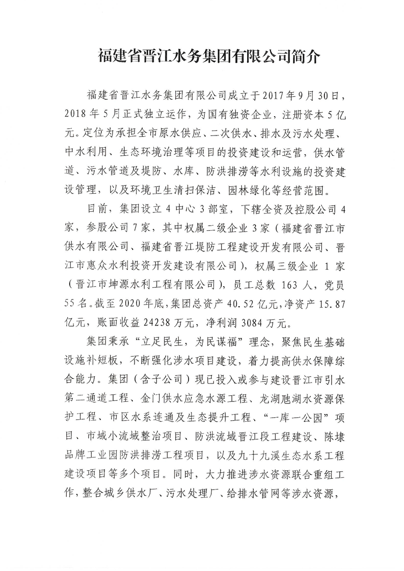 福建省晋江水务集团有限公司