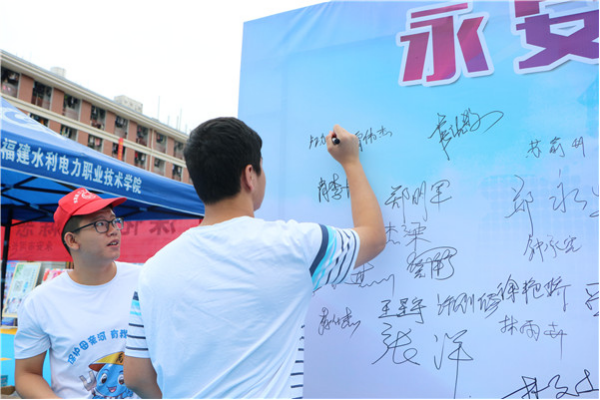 9月8日上午,正值学院迎新日,永安市水利局、市河长办与我院共同举办“保护母亲河 争当河小禹”河长制主题宣传活动。本次活动旨在引导学生树立生态文明意识,自觉践行绿色发展理念。