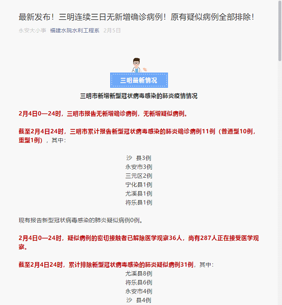 最新发布!三明连续三日无新增确诊病例!原有疑似病例全部排除!