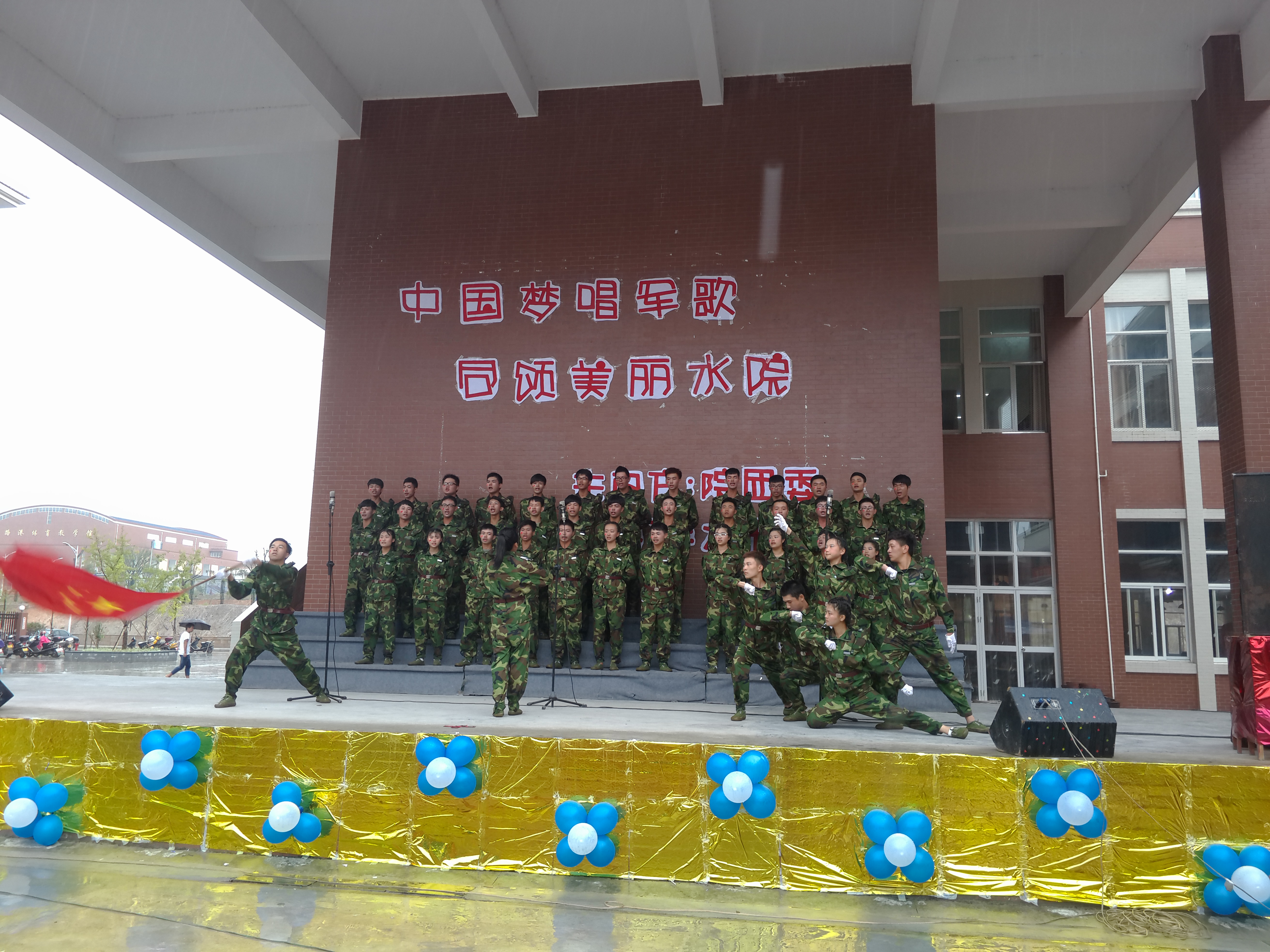 水利系2015级新生军歌赛于2015年9月20日在学院综合楼舞台举行。虽然天下着雨,但新生们风雨无阻,打着伞坚持把比赛参加完。经过一个多小时的激烈比赛,最终测量1531班获得了一等奖,水电1534、水管1533获得二等奖,水管1532、水电1533、水电1534获得三等奖。选送测量1531《血性军人钢铁汉》、水电1534《强军战歌》、水管1533《汽车兵之歌》参加院决赛。水利系2015级新生军歌赛圆满结束。
