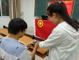 辅导员林丹丹老师细心指导同学们如何筛选和传输照片。看着同学们手机里一张张洋溢着慈爱与青春的笑脸,她不禁和同学们分享起了自己和父亲的点滴往事。林老师说道:“在距离的阻隔下,忙碌的工作中,逐渐淡漠却最不应该淡漠的,就是专属于每个人的最宝贵的亲情。”