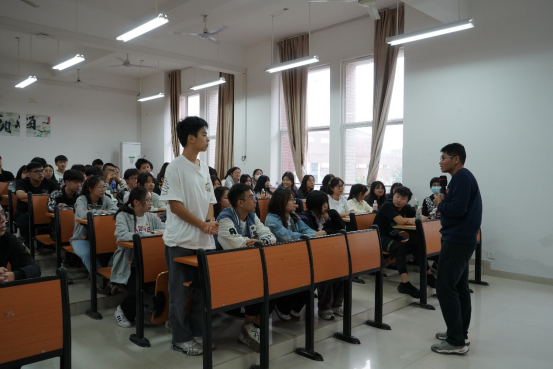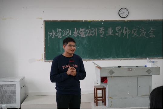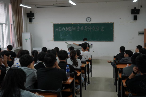 接着,两个班同学相互交流,大二同学积极为大一的学弟学妹答疑解惑,包括即将开始的新生军训以及水利工程制图实训等问题。最后,学生代表成青青和陈锶涵上台分享了自己的专业学习经验,大家表示受益匪浅。