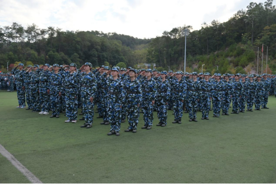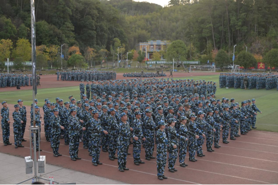 嘹亮豪迈的口号,气宇轩昂的姿态是不惧艰苦训练的最好证明。汗水滴下,是青春的印记更是成长的见证,同学们目光坚定、步伐稳健展示了有理想、有担当的新时代青年。军训的磨练让他们更加意气风发,举手投足间彰显着青春与自信。