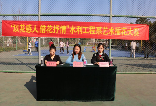 12月11日上午九点,在学院网球场,为了培养提高同学们的内心涵养,学会追求美、欣赏美、创造美,充分展示学生动手动脑能力,水利工程系开展“以花感人,借花抒情”插花比赛。出席本场活动比赛的评委老师有赖德莉老师、林丹丹老师以及巫翠华老师。下面我们一起跟着小禹匠的镜头到现场看看吧!