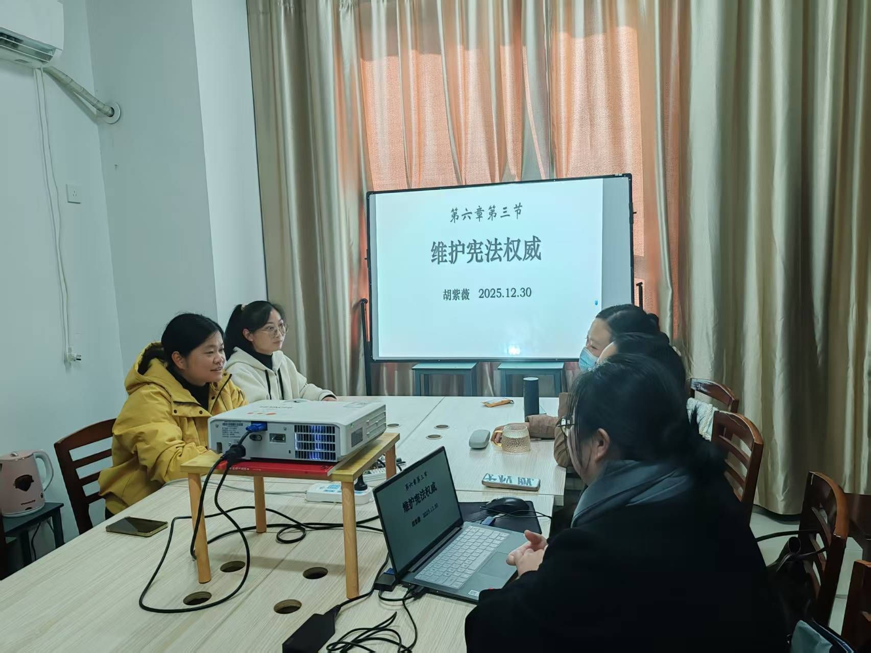 在教学研讨环节,与会教师围绕本次示范课进行了深入交流。大家一致认为,以真实典型的宪法案例为载体,将宪法的历史、地位、原则与实施等抽象内容具象化、情境化,有效激发了学生的学习兴趣与思考深度。“一案到底”的叙事方式,不仅增强了课堂的连贯性与吸引力,更使法治教育入脑入心,有力培育了学生的宪法意识与法治信仰。