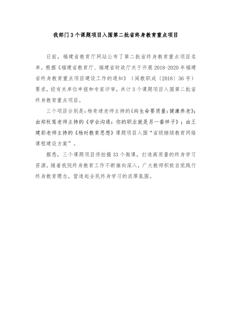 我部门 3 个课题项目入围第二批省终身教育重点项目