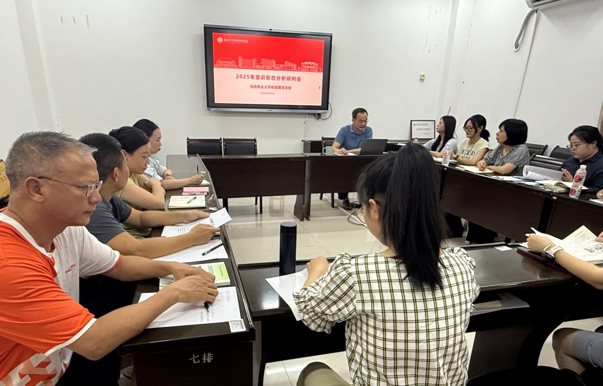 马克思主义学院直属党支部于8月30日成功召开意识形态分析研判会,本次会议由党支部书记张盛文老师主持,支部全体成员参会。