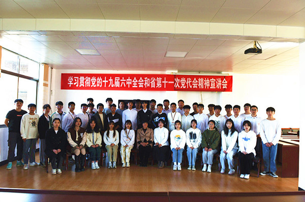 吃过红军餐后,黄站长邀请了全国十九大党代表许光园为读书社师生讲述五一村从落后成长为示范村的故事。“利落短发、一脸黝黑,话语谦逊、笑容敦厚,让人心生信赖。”这是同学们对许光园女士的第一印象。接下来,许光园和同学们进行了党的十九届六中全会学习交流,许光园深情寄语:“同学们生逢其时,也重任在肩,要做有理想的新时代青年,扣好人生“第一粒扣子”,忠于祖国,忠于人民,把自己的理想同祖国的前途,把自己的人生同民族的命运,紧密联系在一起,坚定听党话、跟党走。”