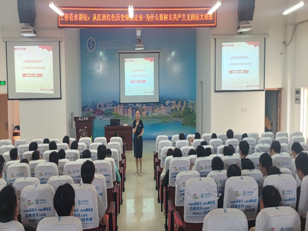 2022年6月23日下午,马克思主义学院教师杨奇靖在禹兴园3-112举办了一场题为《从江西红色历史深处走来——为什么要树立共产主义的远大理想》的党史讲座,150余名学生到场聆听。