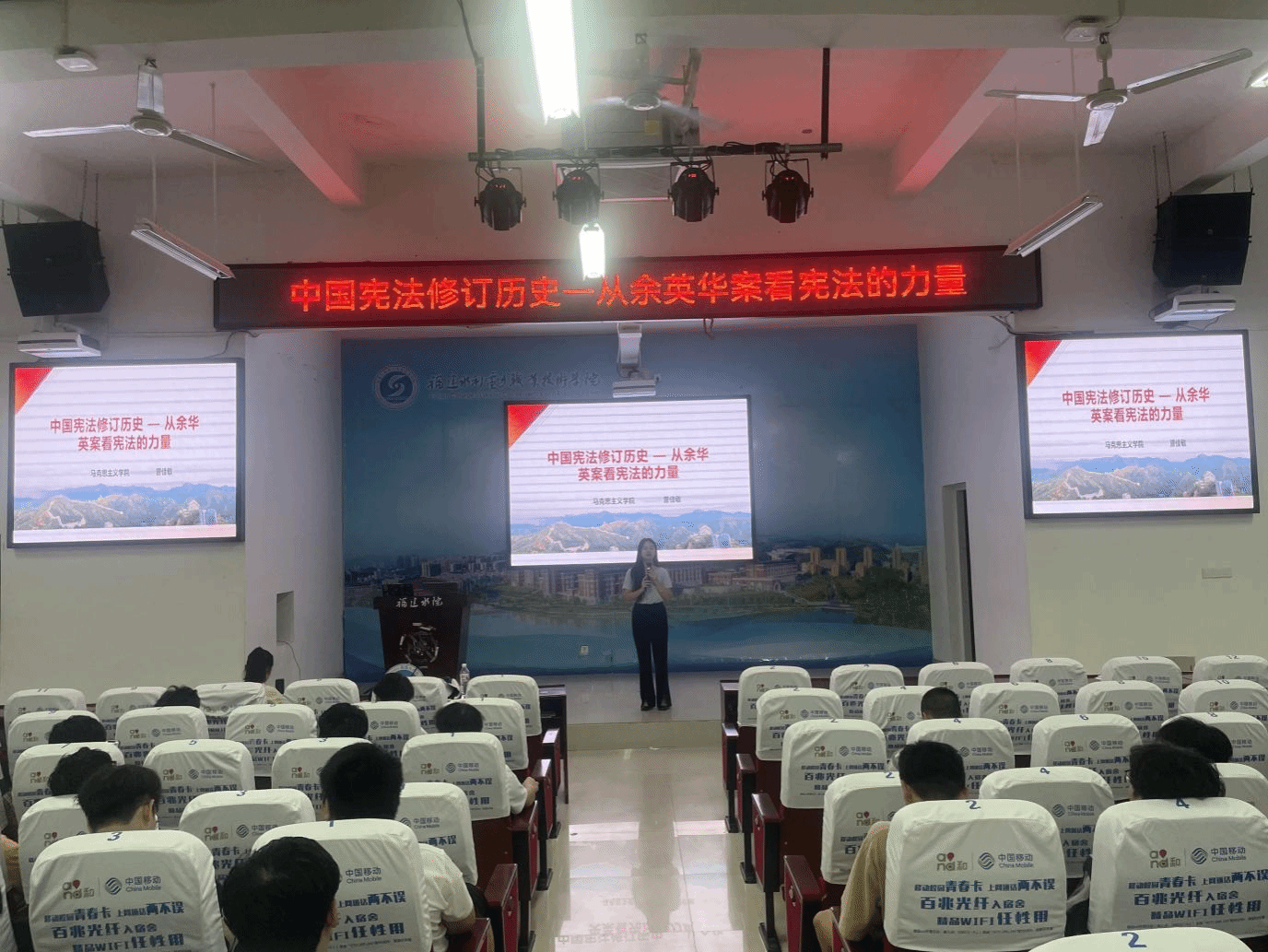 2025年5月13日晚上,马克思主义学院教师曾佳敏在第二学术报告厅以《中国宪法修订历史 —— 从余华英案看宪法的力量》为题举办上善若水讲坛,师生共有100多人到场聆听。