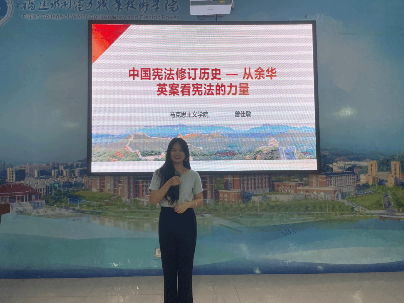 随后,曾佳敏老师以近期备受关注的“余华英案”为例,深入剖析了宪法在司法实践中的力量。她详细解读了案件中宪法条款的适用情况,尤其是宪法对公民人身自由、人格尊严等基本权利的保护,以及司法机关如何依据宪法精神作出公正裁决。通过这一案例,她让学生们直观地认识到宪法不仅是文本上的规定,更是现实生活中维护公平正义的强大武器。