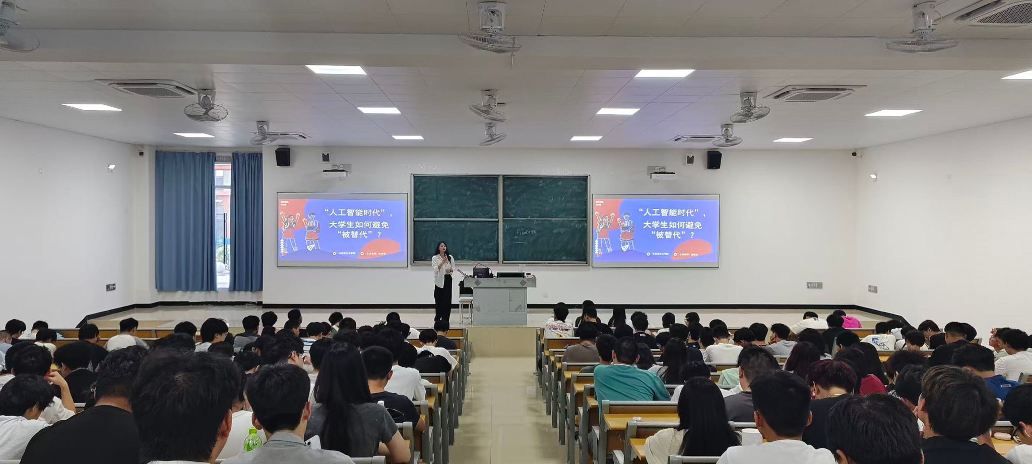 2025年10月14日下午,马克思主义学院教师曾佳敏在李冰园-107多功能教室开展题为《人工智能时代:找准定位、提升内核——大学生如何避免“被替代”》的“上善若水”讲坛,电气2431、电气2432、电气2433和智控2431共计206名同学到场参与,共同探索人工智能浪潮下的成长与突围路径。