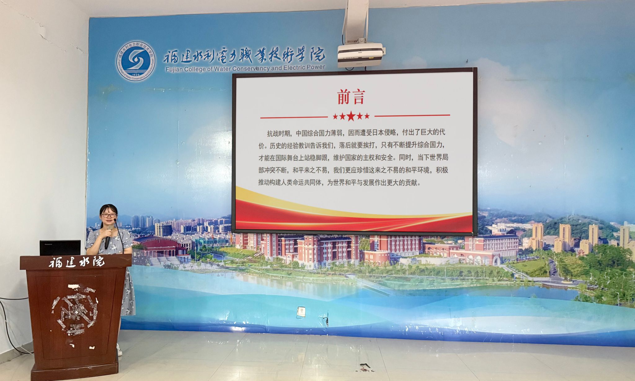 最后,王老师告诉同学们,新征程上,我们要传承和弘扬伟大抗战精神,胸怀天下兴亡、匹夫有责的爱国情怀,秉持视死如归、宁死不屈的民族气节,展现不畏强暴、血战到底的英雄气概,坚守百折不挠、坚韧不拔的必胜信念。坚定理想信念,增强民族自信,努力学习、勤奋工作,为实现中华民族伟大复兴的中国梦贡献力量。