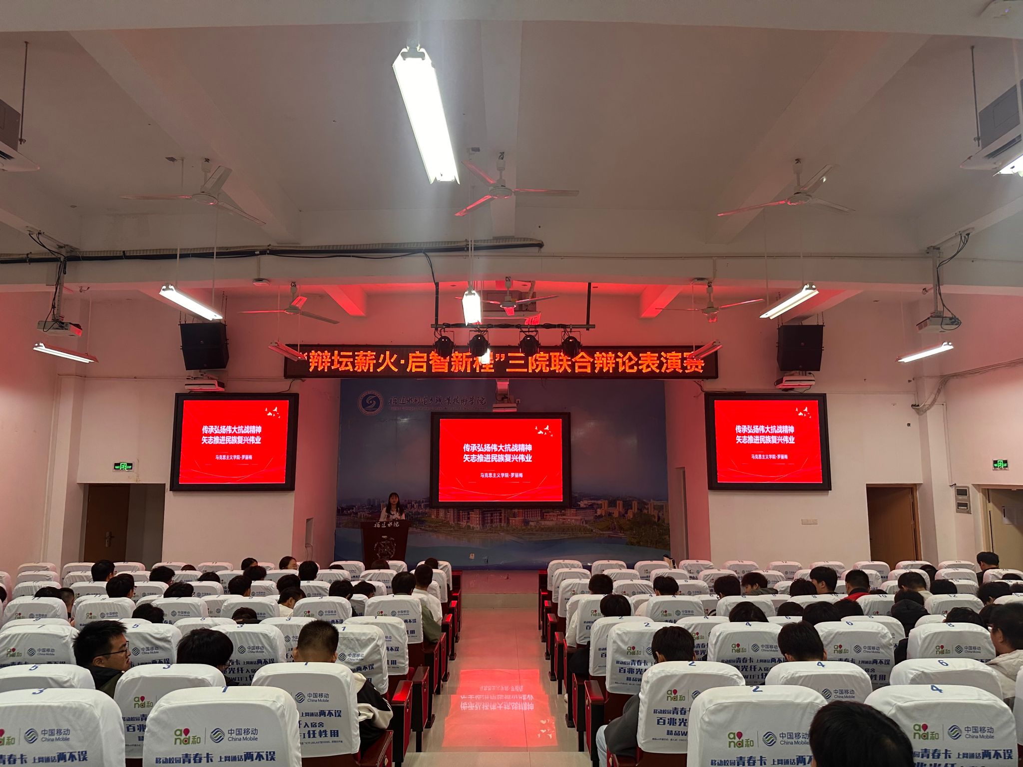 2025年10月21日,马克思主义学院罗丽梅老师在禹兴园3-112报告厅开展上善若水讲坛,以《传承弘扬伟大抗战精神 矢志推进民族复兴伟业》为主题,新车2431、新车2432和新车2433共三个班级的129名同学及2位老师参与其中。