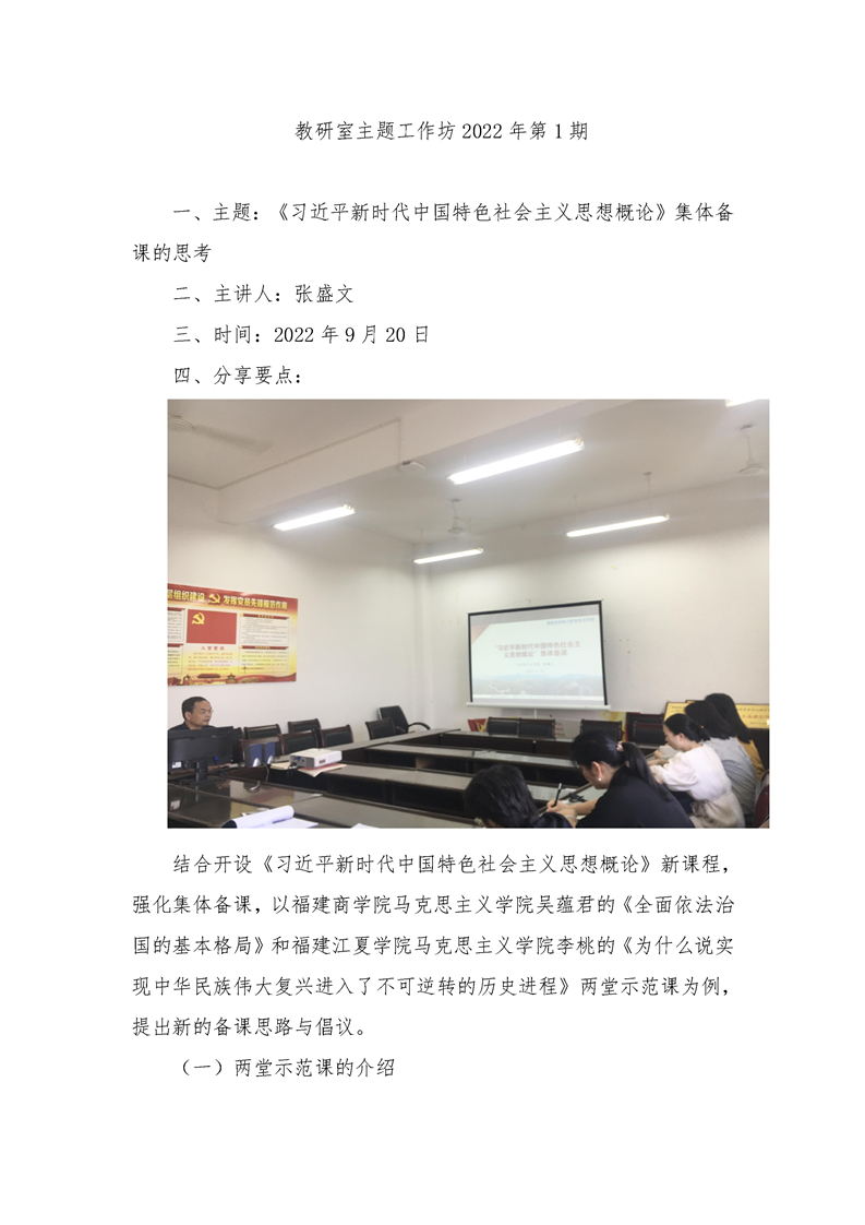 德法教研室主题工作坊2022年第1期