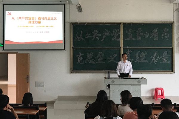 2018年,是马克思诞辰200周年,《共产党宣言》发表170周年,为了纪念这样的重要年份,6月7日下午,马克思主义学院教授张盛文为习近平新时代中国特色社会主义思想读书社全体师生共计160余人开设题为“从《共产党宣言》看马克思主义真理力量”的讲座。