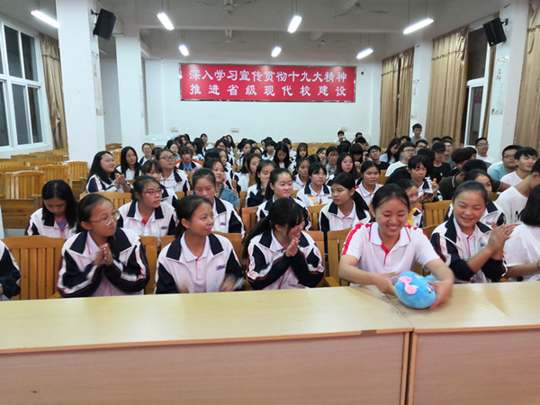 宣讲会上,我院吉祥卡通“水宝”以其灵动形象深深吸引着长汀职专的学生,它在展画中传递“中国梦”“四个自信”等新时代新思想,同学们用“水宝”布偶击鼓传花,发起知识竞答,化抽象思想为具体生动的表达,受到长汀职专师生热烈欢迎。