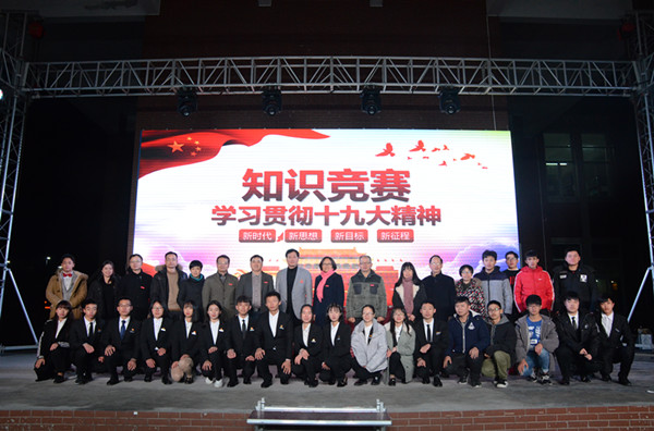 1月11日晚7点,由马克思主义学院举办的学习十九大精神知识竞赛活动在综合楼前的小舞台举行。学院党委书记庄伟廉、党委副书记黄瑞梅、党委委员,学院副院长池长全、党委委员,学院副院长杨武盖、党委工作部部长刘玉萍以及各系党团总支、习近平新时代中国特色社会主义思想读书社全体指导教师出席了活动。
