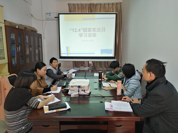 今年12月4日是我国第四个国家宪法日,也是第十七个全国法制宣传日。12月5日,马克思主义学院全体教师在北教3-201开展“12.4宪法日”学习讨论会。
