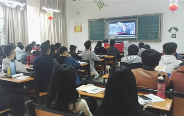 学生在思政课堂上收看法治年度人物颁奖典礼