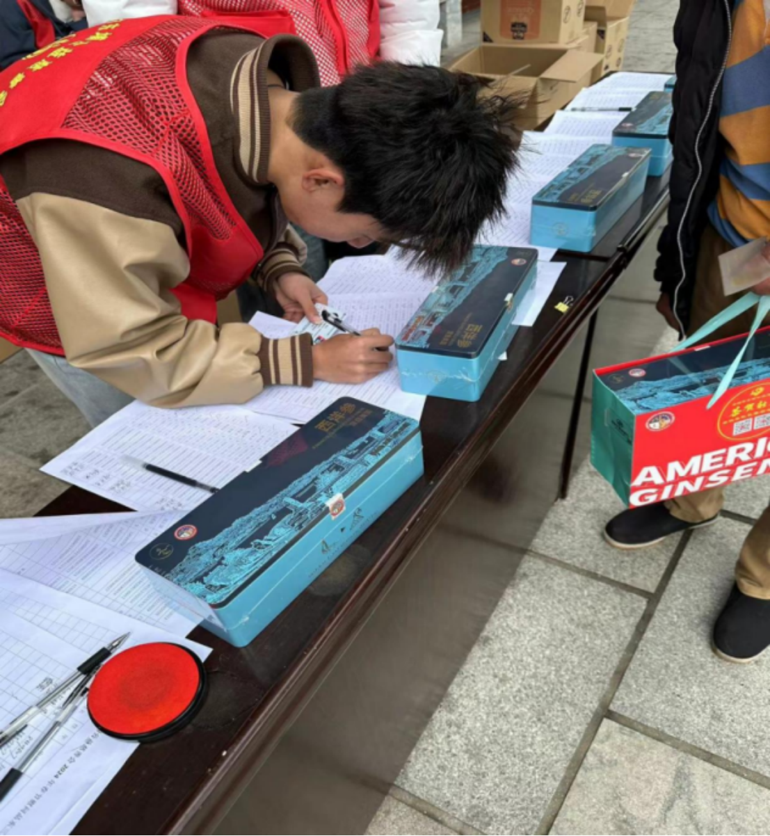 寒假期间,为体现对老人的尊重和关怀,东埔公益慈善会将开展“送温暖、办实事”活动,为全村70周岁以上老年人发放爱心礼品。本人参加此次志愿服务活动,主要是负责对礼品的搬运和包装,还有核对老人的身份信息。在面对大批的人流量时,时刻保持住临危不乱,精准快速无误地找到老人的信息,并为他们送上新春的礼品。活动现场,处处能看到返乡大学生志愿者忙碌的身影。他们贴心服务,一声声关切问候,让老人乡亲在冬日里感受到缕缕暖意。