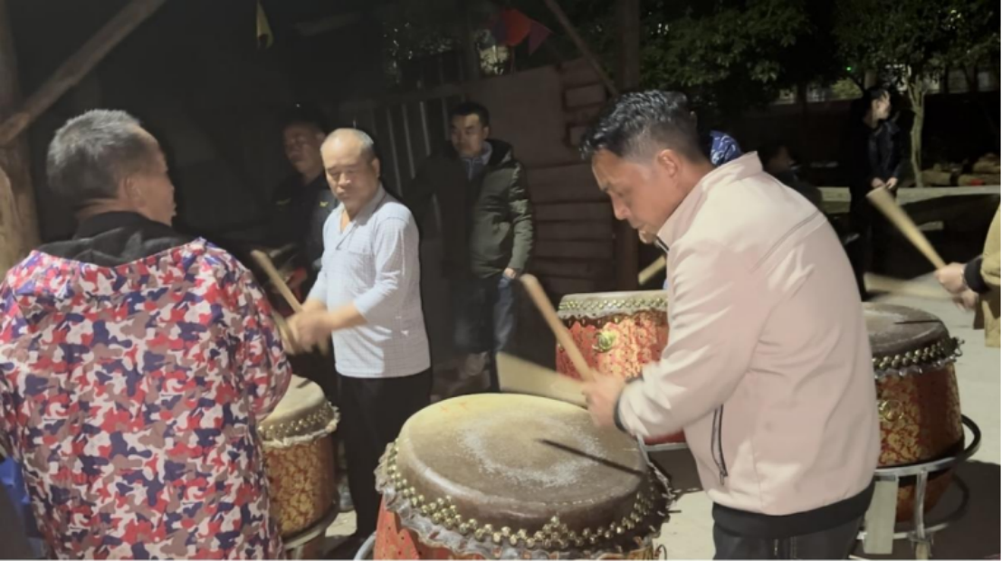 为了更好地体验思州战鼓非遗文化以及更好地做好文化宣传,2月17日晚,在村委会的带领下,我在家乡以调研者的角色参与村里的民间斗鼓。跟随着村委会的步伐,到达斗鼓点后,我先观察其中敲鼓的规律,掌握规律后再上手实践。这是我第一次参与进家乡的非遗文化,得到了老一辈的称赞,也令我回味无穷。