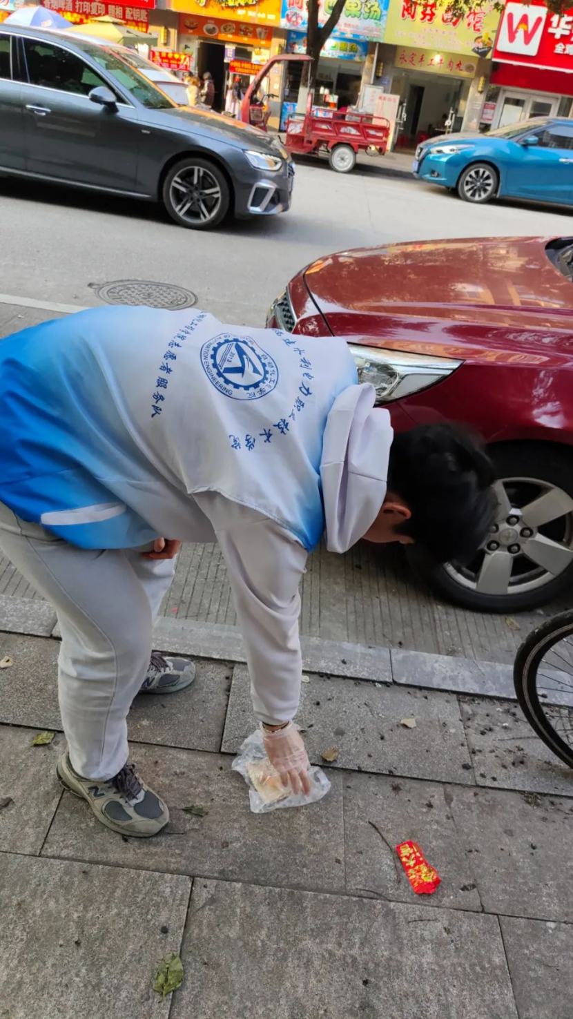 活动当天,志愿者们手持清洁工具,以小组形式分区域开展清扫工作。在清扫过程中,志愿者们认真投入,严谨细致,力争把工作做细、做实,齐心协力地完成了清扫工作。在清理校园内垃圾的同时,同学们还向过往的学生宣传环境保护知识。